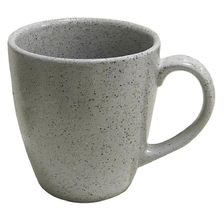 The GET Enterprises PP1944526424 Mug is a versatile and durable choice for a variety of settings, featuring a capacity of 13-5/16 oz. and dimensions of 5-1/8 inches in height. This mug is expertly crafted from porcelain, ensuring a premium feel and long-lasting use. It is part of the Corona, Cosmos Moon line, distinguished by its speckled grey reactive glaze, offering a unique aesthetic appeal. The mug is designed with a convenient handle and a rolled edge, enhancing both functionality and comfort. Engineered to withstand the rigors of daily use, the GET Enterprises mug is scratch and chip resistant, making it a reliable option for high-traffic environments. Additionally, it is microwave, dishwasher, and oven safe, withstanding temperatures up to 380°F, which adds to its versatility in professional and home kitchens alike. Packed in cases of two dozen, this mug is an efficient choice for restaurants, cafes, and hospitality businesses looking to balance style, durability, and practicality. This stocked item is readily available, ensuring that your establishment can maintain consistency in presentation and service. The GET Enterprises PP1944526424 Mug is a practical and stylish solution for any beverage service.