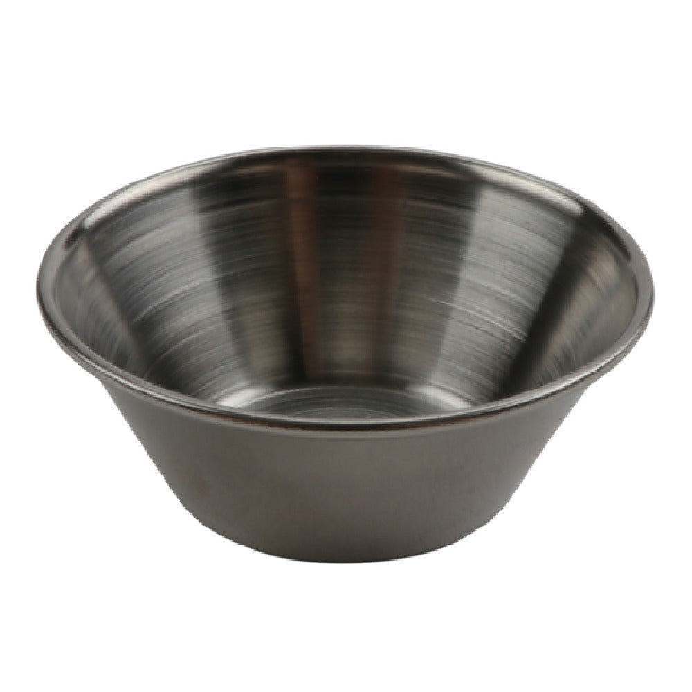 The GET Enterprises R-3SS200 Ramekin 3 Oz. 2.75" X 2.75" X 1.37" is a compact and versatile product made from high-quality stainless steel, specifically from the 200 series, highlighting its durability and resistance to corrosion. Designed with a size of 2.75 inches in both width and length and a height of 1.37 inches, this ramekin is perfect for serving small portions, making it ideal for the hospitality industry, including restaurants, catering services, and hotels. With a capacity of 3 ounces, it serves as a suitable choice for presenting condiments, sauces, or small sides, enhancing food presentation in any dining setting. This ramekin is conveniently packed by four dozen per case, allowing for bulk purchasing and efficient inventory management for large-scale operations. Its stainless steel construction not only adds a touch of elegance to the table setting but also ensures easy maintenance and longevity. The GET Enterprises R-3SS200 Ramekin is a practical and stylish addition to any professional kitchen, offering reliable performance and an attractive design. Whether used in upscale dining establishments or casual eateries, this ramekin meets the demands of various market segments within the food service industry.