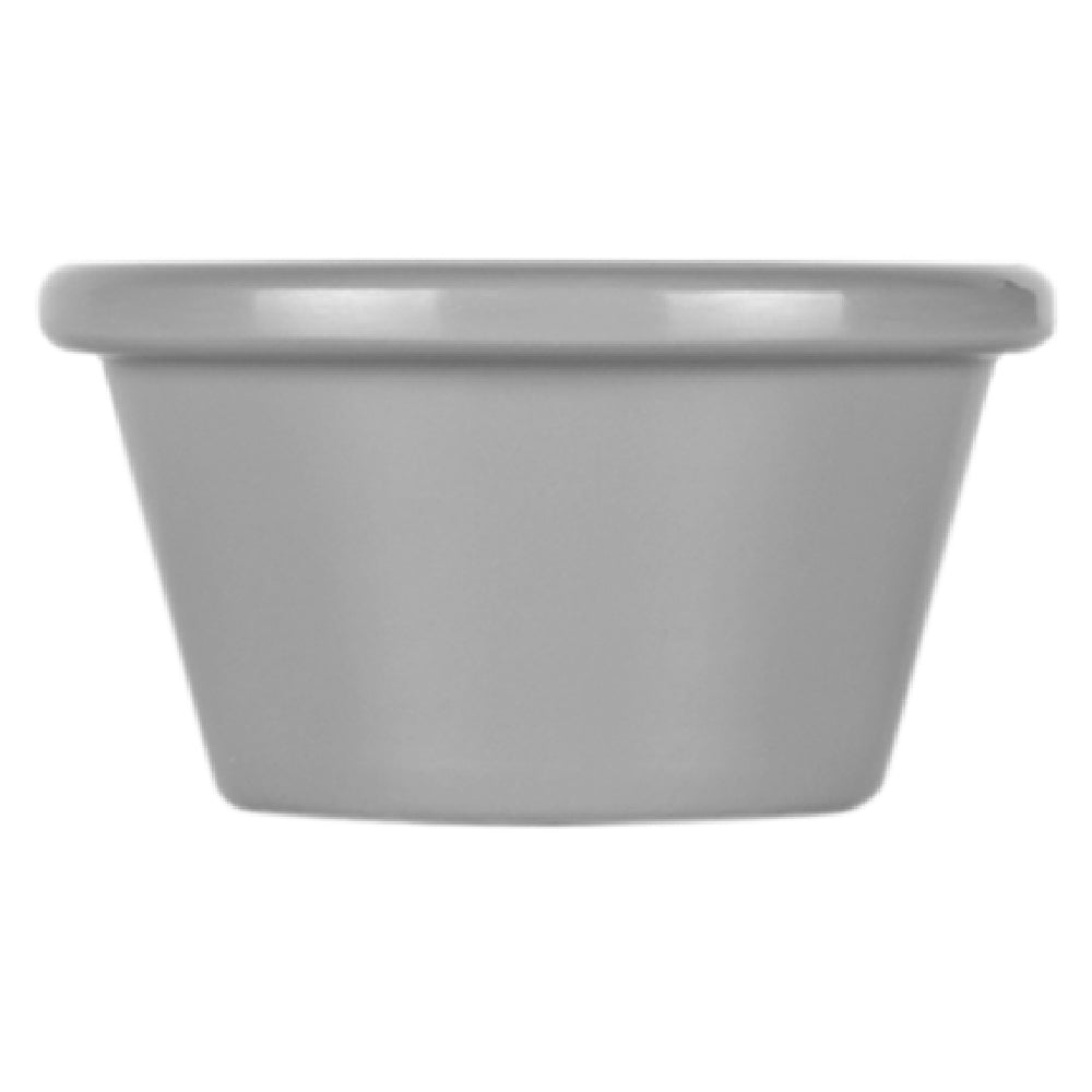 The GET Enterprises R3SM-G Elite Global Solutions Ramekin 3 Oz. - 3" Dia. x 1-5/8"H exemplifies durability and versatility in kitchenware, appealing to various segments within the hospitality and foodservice industries. This round ramekin, made from high-quality gray melamine, is a Vintage California, Cottage design that complements diverse table settings. Notably, its construction is break, chip, stain, and scratch-resistant, ensuring longevity and reliability in high-traffic environments. Measuring 3 inches in diameter and 1-5/8 inches in height, this ramekin offers a 3-ounce capacity, suitable for serving condiments, sauces, or small desserts. The BPA-free material underscores a commitment to safety, making it a preferred choice for health-conscious establishments. Dishwasher safe, this ramekin facilitates easy cleaning, maintaining its pristine appearance over time. Packed in cases of six, it provides a practical solution for restaurants and catering services seeking consistency and quality in their service ware. The GET Enterprises Ramekin stands out as a functional and stylish addition to any dining experience, designed to meet the rigorous demands of professional kitchens while enhancing the visual appeal of food presentations. Its robust features cater to the needs of the food service industry, ensuring it remains a staple for both casual and upscale dining environments.