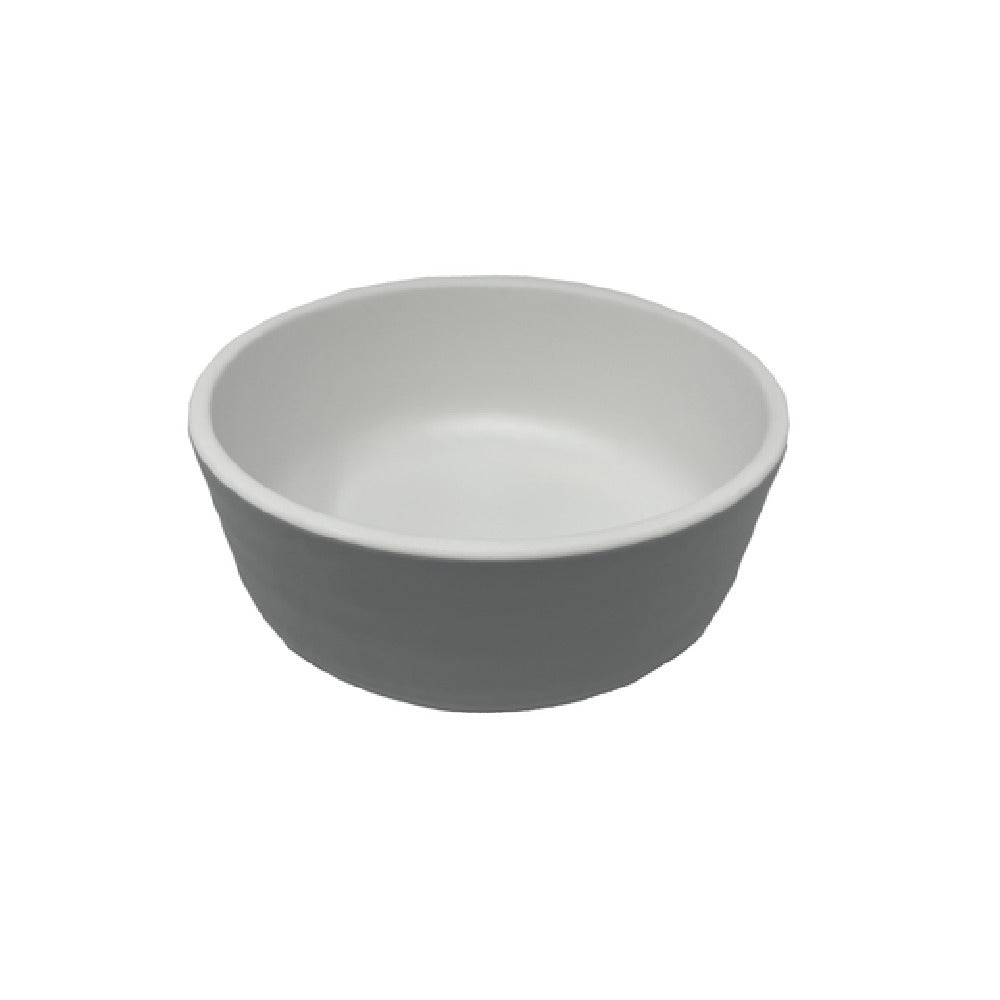 The GET Enterprises RB-15-WM/GRM Roca Soup/Salad Bowl 15 Oz. (20 Oz. Rim Full) Melamine is a versatile dining solution crafted to cater to varied culinary presentations in the hospitality and food service industries. Constructed from durable melamine, this bowl exhibits a white matte finish on the inside and a sophisticated gray matte exterior, enhancing both its aesthetic appeal and functional durability. Its capacity spans from 15 ounces to a generous 20 ounces when filled to the rim, accommodating a wide range of serving needs from soups to salads. The bowl is designed to be packed efficiently, with each case containing 2 dozen units, making it a practical choice for bulk purchase by restaurants, cafeterias, and catering services. The melamine construction ensures a lightweight yet resilient product, ideal for high-volume settings where breakage can be a concern. This product combines both style and practicality, providing an elegant serving vessel that withstands the rigors of daily use. Its sleek design complements a variety of tabletop settings, making it suitable for both casual and formal dining environments. The GET Enterprises RB-15-WM/GRM Roca Soup/Salad Bowl is a reliable and stylish option for businesses seeking quality and consistency in their serving ware.