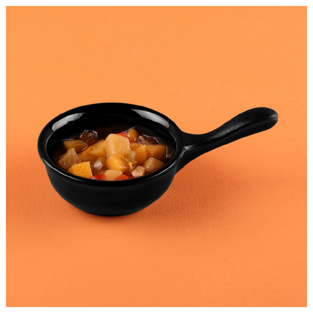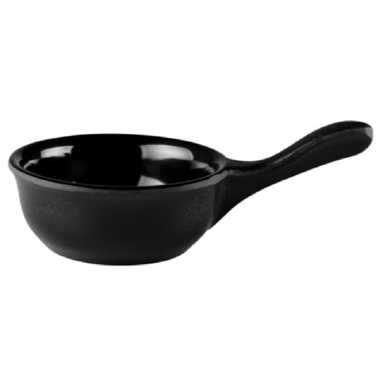 The GET Enterprises RFP-2 Elite Global Solutions Melamine Ramekin Frying Pan is a 2 oz. capacity serving solution with a precise 2-3/4" diameter and 1" height, tailored for various culinary applications. Crafted from durable melamine, this ramekin frying pan is engineered to resist breaks, chips, stains, and scratches, ensuring lasting performance in high-demand environments. Its dishwasher-safe design simplifies maintenance, promoting efficiency in busy kitchen settings. The product's BPA-free construction underscores its commitment to safety, making it suitable for health-conscious establishments. Available in a sleek black finish, this ramekin frying pan is a versatile addition to any table setting, complementing a wide range of dining aesthetics. Ideal for restaurants, catering services, and hospitality venues, the GET Enterprises RFP-2 provides a unique blend of functionality and style. It comes packed by six units per case, offering convenient stock management for large-scale operations. This product's robust build and elegant appearance cater to diverse market segments, including upscale dining, casual eateries, and buffet services, by enhancing presentation while maintaining practical utility.