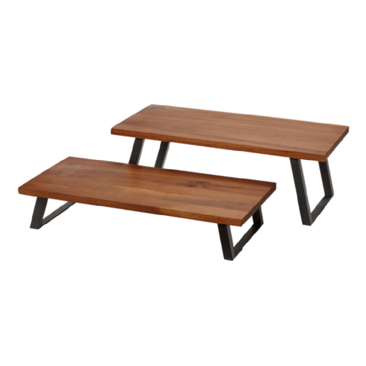 The GET Enterprises RISER-9-W Urban Renewal™ Heights™ Riser is a meticulously designed display platform with dimensions of 19-3/4 inches in length, 9-4/5 inches in width, and 9 inches in height, specifically crafted to enhance the presentation of various items. Equipped with foldable metal legs, this riser combines functionality with space-saving convenience, making it an adaptable choice for dynamic display needs across different market segments. The use of walnut wood for its construction lends an aesthetic appeal that complements both contemporary and traditional settings, making it a versatile addition to any display environment. The RISER-9-W is ideally suited for retail spaces, trade shows, or hospitality venues where showcasing products with elegance and style is paramount. Its robust build ensures stability and durability, catering to businesses that prioritize long-lasting display solutions. This riser, packed individually, is a singular piece that combines both form and function, offering a sophisticated means to elevate and organize displays effectively. By focusing on detailed craftsmanship and practical design, the GET Enterprises RISER-9-W stands out as a valuable tool for industries aiming to highlight their products with a touch of elegance and professionalism.