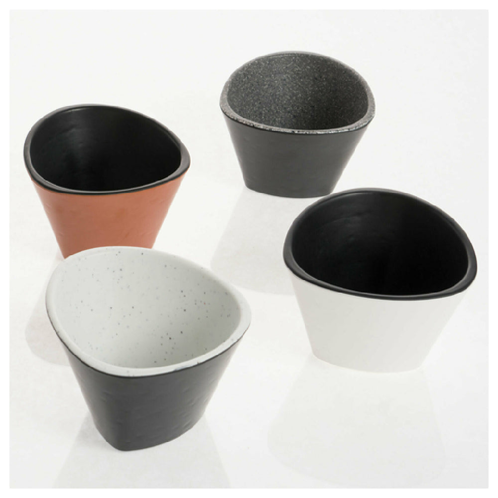 The GET Enterprises RIV200 Cheforward Revive Bowl 10-1/10 Oz. Triangular is a uniquely designed serving bowl perfect for a variety of dining environments. With a capacity of 10-1/10 oz., this triangular bowl offers an innovative shape that adds a modern touch to presentation. Crafted from durable melamine, it combines the look of stone grey and white tones, making it both aesthetic and functional. The bowl is BPA free, ensuring safe use for foodservice applications, and is dishwasher safe, providing convenience in cleaning and maintenance. Packaged with 48 pieces per case, the RIV200 Revive Bowl caters to high-volume operations, making it ideal for restaurants, catering services, and hospitality businesses. Its robust construction is designed to withstand the rigors of daily use in commercial settings. The unique triangular shape allows for creative plating and serving, appealing to chefs and foodservice professionals who prioritize innovative presentation. Whether used in a buffet setting or an upscale dining environment, this bowl efficiently combines style and practicality, making it a valuable addition to any culinary establishment. Its melamine construction ensures lightweight handling, while the stone grey and white finish adds an element of sophistication to the table setting.