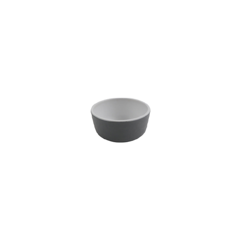 The GET Enterprises RR-3-WM/GRM Roca Sauce Dish 3 Oz. (4oz. Rim Full) Melamine is a versatile dish designed for both practicality and aesthetic appeal in various food service settings. This dish, featuring a 3 oz. capacity with a rim-full capacity of 4 oz., is ideal for serving a variety of sauces and condiments. Crafted from durable melamine, it offers the look and feel of ceramic while being resistant to breakage, making it a smart choice for high-traffic environments such as restaurants, catering services, and buffets. Its white matte interior provides a clean and elegant presentation surface, while the gray matte exterior adds a touch of modern sophistication. This dish is packed by 6 dozen per case, ensuring that businesses can maintain ample stock for their operational needs. The combination of its durable material and stylish design allows the GET Enterprises RR-3-WM/GRM Roca Sauce Dish to cater to a wide range of market segments within the food service industry, from casual dining to upscale establishments, offering a reliable and aesthetically pleasing solution for serving sauces and small dishes.