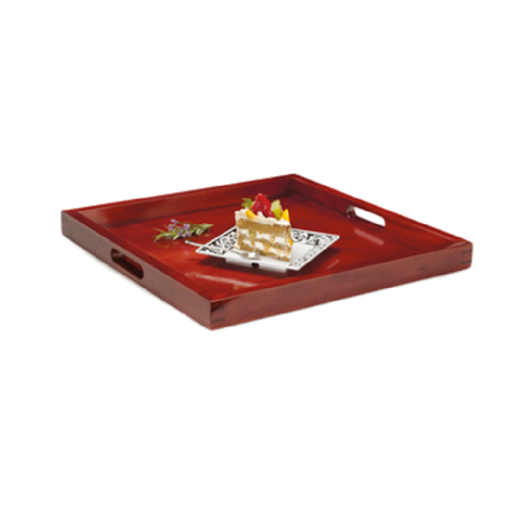 The GET Enterprises RST-2020-M Room Service Tray - 21" x 2" deep square - is meticulously crafted from high-quality hardwood with a rich mahogany finish, making it an exemplary choice for hospitality and dining establishments. This elegant square tray measures 21 inches on each side with a depth of 2 inches, providing ample space for a variety of room service needs, from gourmet meals to breakfast spreads. Its robust construction ensures durability and longevity, allowing it to withstand daily use in busy hotel environments. The sophisticated mahogany finish not only enhances its aesthetic appeal but also complements a wide range of interior decors, making it a versatile addition to any setting. Each case includes two trays, offering convenience and value for establishments catering to a large number of guests. The GET Enterprises RST-2020-M Room Service Tray is an ideal solution for hotels seeking to elevate their service standards and present meals with a touch of class and quality. Its practical design and elegant finish make it suitable for upscale restaurants, luxury hotels, and resorts aiming to deliver an exceptional room service experience.
