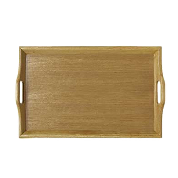 The GET Enterprises RST-2516-N Room Service Tray is a versatile and durable solution for hospitality settings, measuring 25 inches by 16 inches. This rectangular tray is crafted from high-quality hardwood, ensuring longevity and a premium feel. The natural finish highlights the wood's inherent beauty, making it a sophisticated choice for luxury hotels or upscale dining services. Packed six per case, this product caters to the operational needs of various market segments, from boutique hotels to large-scale resorts. The ample surface area of 25 inches by 16 inches accommodates a comprehensive range of dining presentations, from complete meal sets to elaborate room service displays. Its robust construction ensures that it can withstand frequent use, making it a reliable choice for high-traffic environments. The GET Enterprises RST-2516-N Room Service Tray's natural wood finish not only adds an elegant touch to room service but also aligns with sustainable practices sought after by eco-conscious consumers. This tray's combination of size, material, and natural aesthetics provides a practical yet stylish solution for enhancing guest experiences in the hospitality industry.