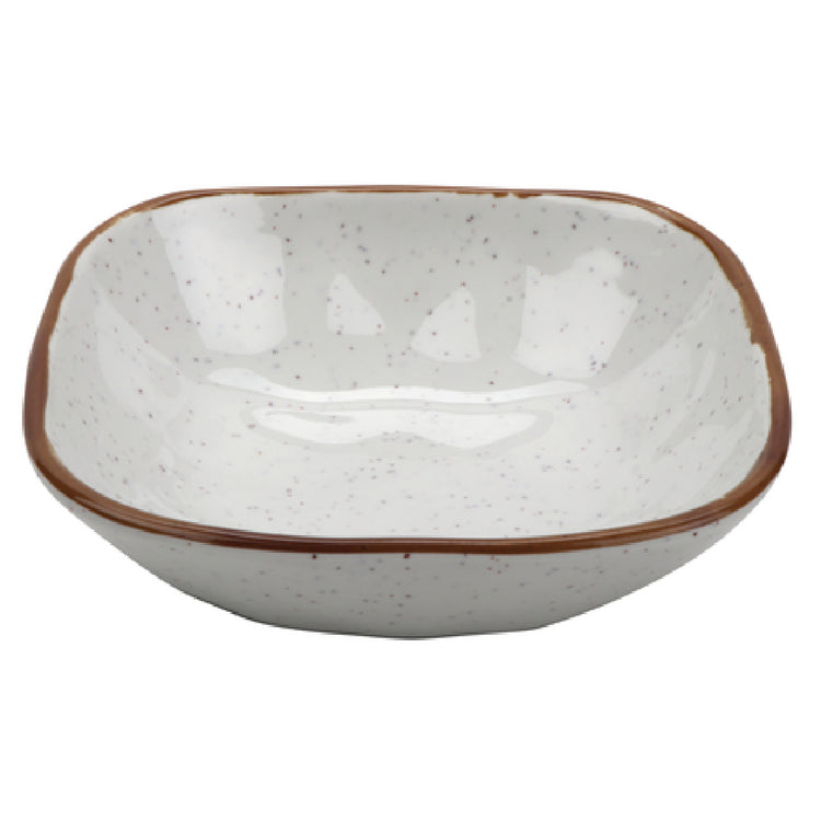 The GET Enterprises SB-14-RM Rustic Mill™ Bowl 14 Oz. 6" X 6" X 1-1/2"H is a versatile, durable dining solution designed for a variety of food service settings. This square-shaped bowl features an irregular shape that adds a rustic charm to any table setting. With a capacity of 14 ounces, it is well-suited for serving soups, salads, or side dishes. Crafted from break-resistant melamine, this bowl is both lightweight and robust, ensuring long-lasting performance in busy commercial environments. Its cream base is elegantly accented with brown speckles and a brown rim, providing a stylish aesthetic that complements a rustic or contemporary dining theme. For added convenience, the GET Enterprises Rustic Mill™ Bowl is dishwasher safe, facilitating easy cleanup after service. It is NSF certified, highlighting its adherence to public health and safety standards, and BPA free, ensuring safe use in dining establishments. Each case contains two dozen bowls, making it an economical choice for restaurants seeking to maintain a consistent table presentation. The combination of durability, safety, and design makes this bowl a valuable addition to any food service operation, offering reliable performance and an attractive presentation for a wide range of culinary applications.