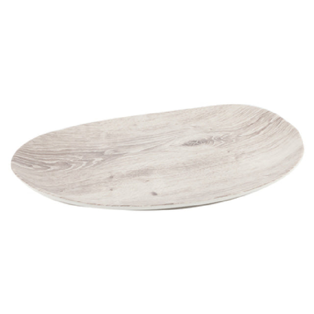 The GET Enterprises SB-1600-DRW Granville™ Display Board is a meticulously designed serving platform measuring 16 inches in width, 12 inches in depth, and 3/4 inches in height, with an oval shape. This distinct display board is crafted from durable melamine, known for its break-resistant properties, making it an ideal choice for bustling restaurant environments or catering services where durability is paramount. The board features a unique foot and ridge design, enhancing stability and presentation aesthetics. With a faux driftwood finish, it adds an elegant, rustic touch to any setting, appealing to establishments aiming for a natural or vintage ambiance. This display board is BPA-free, ensuring safety and health standards are met for food service applications. Its dishwasher-safe nature facilitates easy and efficient cleaning, a valuable trait for high-volume food service operations. Packed as six per case, it caters to businesses seeking bulk purchasing options. The GET Enterprises SB-1600-DRW Granville™ Display Board's combination of aesthetic appeal, functional design, and robust material makes it versatile for various markets, from hotel buffets to artisan cheese shops, enhancing the presentation of culinary creations while ensuring practical usability.