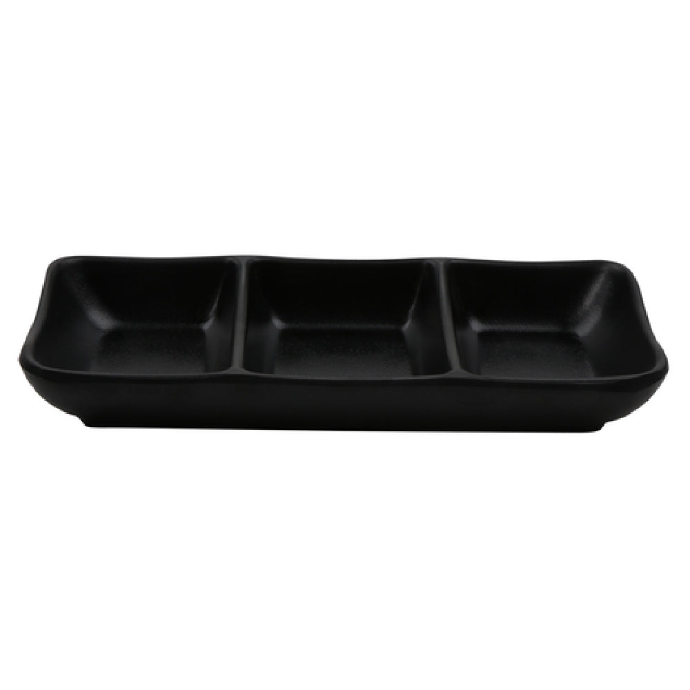 The GET Enterprises SD-7600-BK Nara™ Sauce/Appetizer Dish is specifically designed for versatile food presentation, boasting a capacity of 5-1/2 oz., extendable to 6 oz. when filled to the rim. Crafted from durable melamine, this dish is both break-resistant and dishwasher safe, ensuring longevity and easy maintenance in busy food service environments. Measuring 7-3/4 inches by 3-1/4 inches with a height of 3/4 inches, this rectangular dish is thoughtfully divided into three compartments, offering an organized and appealing way to serve multiple sauces or appetizers simultaneously. The sleek black finish adds a touch of elegance, fitting seamlessly into various dining settings, from casual eateries to upscale restaurants. Importantly, this dish is BPA Free, aligning with health-conscious dining practices, and it carries NSF certification, affirming its adherence to high public health and safety standards. Packed by 2 dozen per case, the GET Enterprises SD-7600-BK Nara™ Sauce/Appetizer Dish is an ideal choice for restaurant owners, caterers, and hospitality professionals seeking a reliable and stylish serving solution that meets the demands of the food service industry while enhancing the dining experience for their patrons.