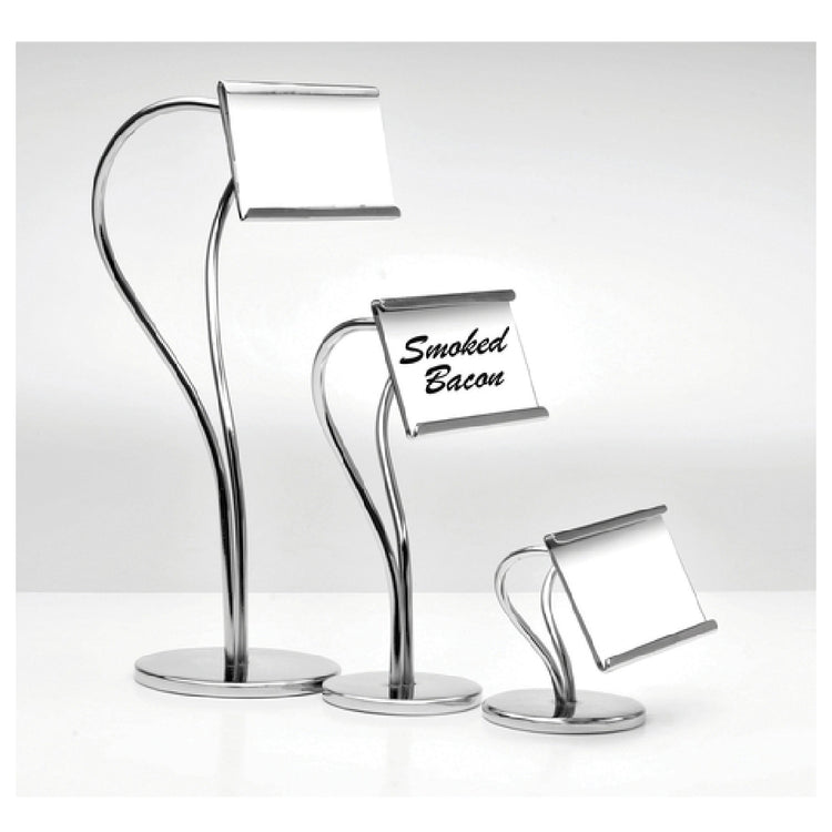 GET Enterprises SGN-11 Urban Renewal™ Card Holder 3-1/2"H S-shaped is a meticulously designed product tailored for contemporary settings. This card holder stands at an elegant height of 3-1/2", featuring an innovative S-shaped design that adds a modern aesthetic to any environment. Crafted with a chrome-plated finish, it offers a sleek and shiny appearance, making it an eye-catching addition to desks, reception areas, or retail displays. Each case is thoughtfully packed with 12 units, allowing for efficient distribution and storage in commercial settings. The chrome plating not only enhances its visual appeal but also provides a layer of durability and resistance to wear, ensuring longevity and performance. Its distinctive shape and robust construction cater to diverse segment markets, including hospitality, corporate, and retail, by providing a practical and stylish solution for organizing and displaying cards. The GET Enterprises SGN-11 Urban Renewal™ Card Holder is a testament to functionality meeting design, offering a unique value proposition for businesses seeking to enhance their organizational tools with a touch of elegance and modernity.