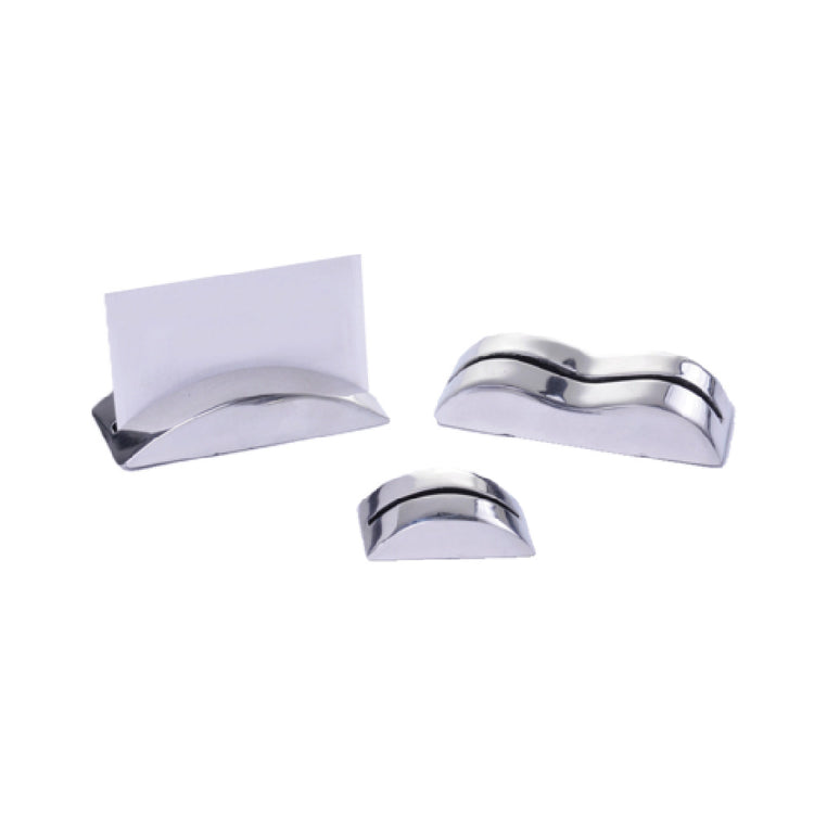 The GET Enterprises SGN-35 Urban Renewal™ Card Holder is a meticulously crafted piece designed to provide functional elegance in professional settings. Measuring 3-3/4 inches in length and 3-1/4 inches in height, this card holder is an exemplar of precision with its single wave design. The 3/16-inch slot accommodates a variety of card thicknesses, making it versatile for different business environments. Constructed from stainless steel, this card holder not only ensures durability and longevity but also adds a sleek, modern touch to any tabletop or reception area. The product is packaged with 12 units per case, which is ideal for larger establishments requiring multiple holders, such as hotels, restaurants, and corporate offices. This card holder is part of the Urban Renewal™ line, blending functional design with aesthetic appeal, making it suitable for diverse market segments that value both practicality and style. Whether used in a bustling restaurant to present menu cards or in a corporate setting to display business cards, the GET Enterprises SGN-35 stands as a testament to quality and thoughtful design, accommodating the needs of any industry that prioritizes sophisticated presentation solutions.