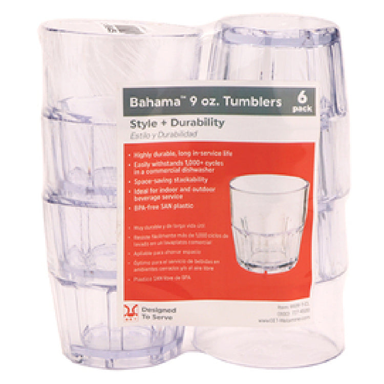 The GET Enterprises SP-9909-1-CL Bahama™ Rock Tumbler 9 Oz. (9.45 Oz. Rim Full) 3-1/4" Dia. X 3-1/2"H is a versatile rock tumbler designed for both practicality and aesthetic appeal. With a capacity of 9 ounces and a rim-full measurement of 9.45 ounces, this tumbler is ideal for serving a variety of beverages in hospitality settings. The dimensions of this tumbler, measuring 3-1/4 inches in diameter and 3-1/2 inches in height, provide a compact yet ergonomic structure that facilitates easy handling and storage. Unique to this model is its stacking capability, allowing for efficient space utilization, making it particularly advantageous for commercial establishments such as bars and restaurants. Crafted from BPA-free SAN material, this tumbler ensures safety and durability for long-term use. Its clear design not only enhances the presentation of beverages but also adheres to NSF certification standards, guaranteeing compliance with health and safety regulations. The special packaging of this set, which includes six tumblers, is packed in cases of four sets each, optimizing inventory management for businesses. The GET Enterprises SP-9909-1-CL Bahama™ Rock Tumbler is an exemplary product in the food service industry, blending functionality and design for diverse market segments.
