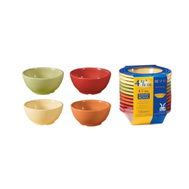 The GET Enterprises SP-B-45-COMBO Diamond Harvest™ Bowl 10 Oz. (10-1/2 Oz. Rim Full) 4-1/2" Dia. X 2-1/4"H is a versatile serving solution ideal for restaurants, catering services, and other foodservice establishments. This round bowl is meticulously crafted from break-resistant melamine, ensuring durability and longevity in high-demand environments. It is BPA-free, aligning with safety standards for food contact materials. The bowl's dimensions, 4-1/2 inches in diameter and 2-1/4 inches in height, offer a convenient size for various culinary presentations. With a capacity of 10 ounces, extendable to 10-1/2 ounces when filled to the rim, it is suitable for serving soups, salads, and side dishes. The bowl is dishwasher-safe, facilitating easy cleanup and maintenance for busy kitchens. A unique feature of this product is its vibrant combination of all four Diamond Harvest™ colors - avocado, cranberry, pumpkin, and squash - providing an aesthetic appeal that enhances table settings. Additionally, it holds NSF certification, indicative of its compliance with stringent public health and safety standards. Special packaging is employed for this product, which is available packed by two dozen per case, making it a convenient and practical choice for bulk purchasing and inventory management in any foodservice operation.