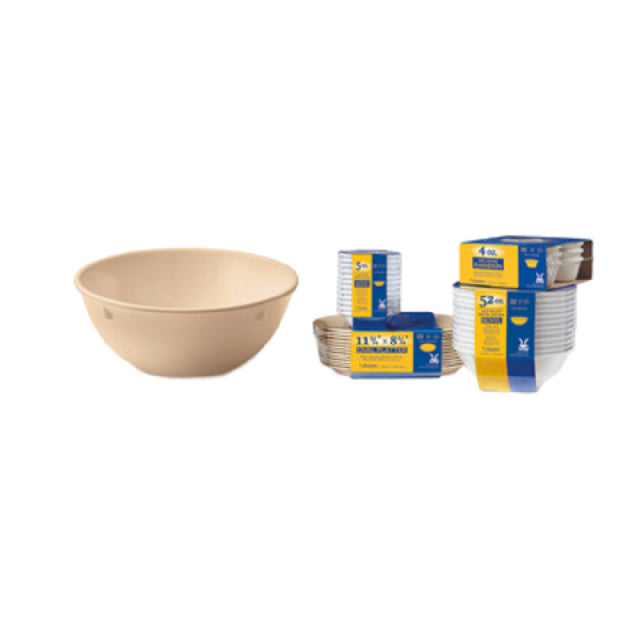 The GET Enterprises SP-DN-317-T Supermel™ Bowl/Nappie is a versatile and robust dish designed for various food service settings. With a capacity of 13 oz. and reaching up to 14.7 oz. when filled to the rim, it provides ample space for serving portions. The bowl measures 5-1/4 inches in diameter and stands 2 inches high, perfectly sized for a range of dining applications. Constructed from durable melamine, this bowl is break-resistant, ensuring long-lasting use even in the busiest environments. Its tan color offers a neutral aesthetic that complements any table setting. The bowl is dishwasher safe, facilitating easy and efficient cleaning, which is essential for maintaining hygiene standards. Meeting NSF certification standards, it upholds public health and safety requirements, making it a reliable choice for commercial dining facilities. The bowl is specially packaged with four dozen per case, catering to the demands of high-volume establishments. The GET Enterprises SP-DN-317-T Supermel™ Bowl/Nappie is an excellent option for restaurants, cafeterias, and catering services seeking durable and practical dinnerware solutions without sacrificing style or functionality.