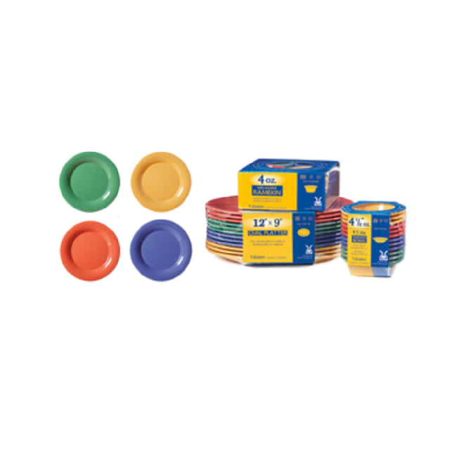 The GET Enterprises SP-WP-7-MIX Diamond Mardi Gras™ Plate 7-1/2" Dia. Round is a break-resistant dining solution engineered for versatility across various industry sectors. This plate, measuring 7-1/2 inches in diameter, features a wide rim design crafted from durable melamine, ensuring long-lasting usability and resistance to damage. Notably, it is dishwasher safe and BPA free, underscoring its commitment to safety and convenience in high-paced environments. Each set includes a mix pack of four vibrant Mardi Gras™ colors: tropical yellow, rio orange, peacock blue, and rainforest green, adding a festive and colorful element to any table setting. The plate is NSF certified, which assures compliance with rigorous public health standards, and it comes in special packaging packed by four dozen per case, optimizing storage and distribution. This product's design and material composition make it ideal for restaurants, catering services, and event venues seeking durable, colorful tableware that meets safety certifications while enhancing the aesthetic appeal of their offerings. Its break-resistant quality is particularly valuable in fast-paced settings where durability is paramount, making it a practical choice for various professional applications.