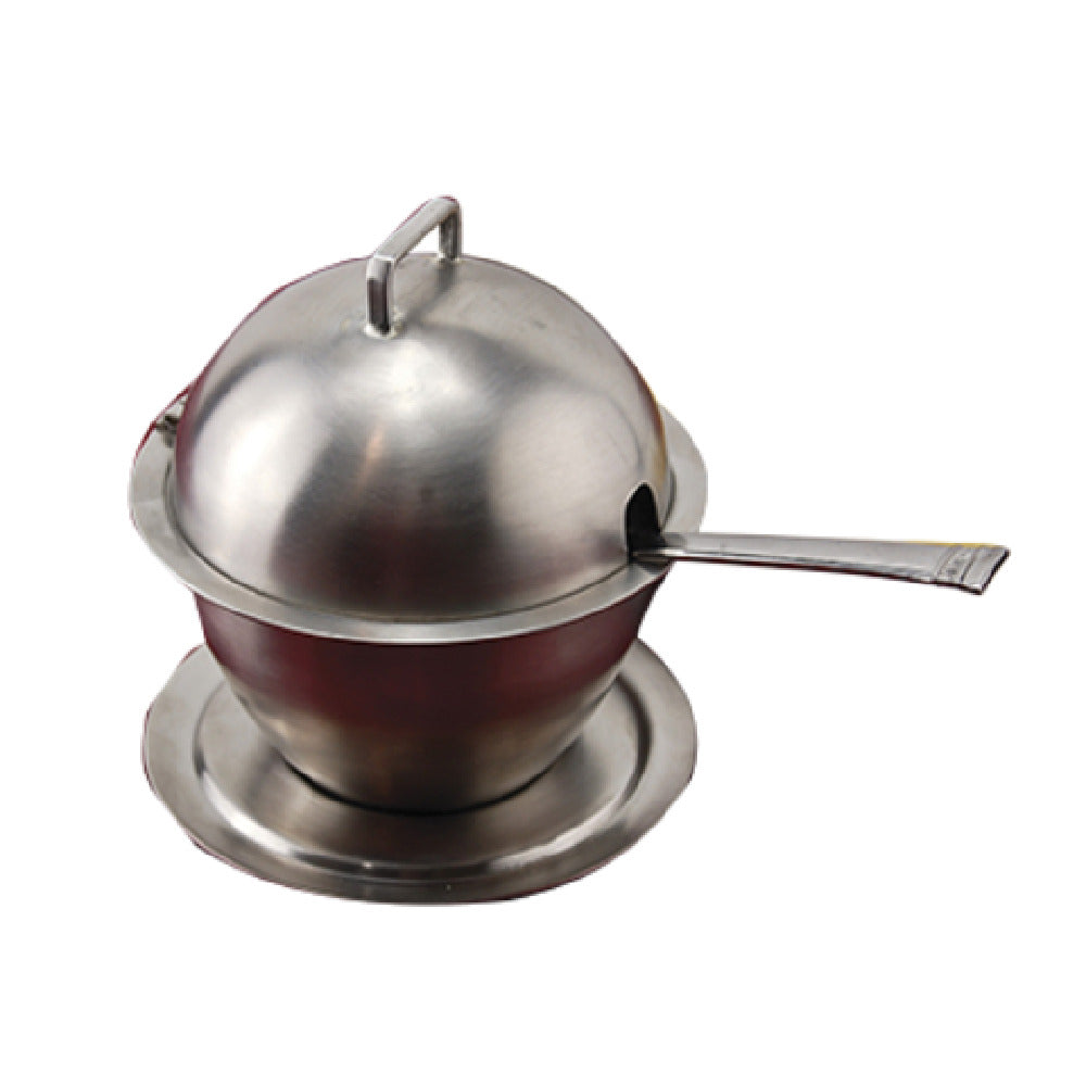 The GET Enterprises SSPARM-11 Clipper Mill Covered Bowl is a meticulously crafted 10 oz. container, designed to meet the diverse needs of various industry segments. Featuring a 4-1/2 inch diameter and standing 5 inches tall, this round bowl is engineered with a hinged cover, ensuring convenience and efficiency in food service operations. Its brushed finish lends a sophisticated touch, while the stainless steel construction guarantees durability and longevity, making it a reliable choice for both commercial and residential settings. This product is packed by 1 each, emphasizing its focus on quality and exclusivity. Its robust design and practical size cater to a range of applications from elegant dining setups to casual catering events, where maintaining food presentation and temperature is essential. The GET Enterprises SSPARM-11 Clipper Mill Covered Bowl stands out as a utilitarian yet stylish option for those seeking both form and function in their food presentation tools.