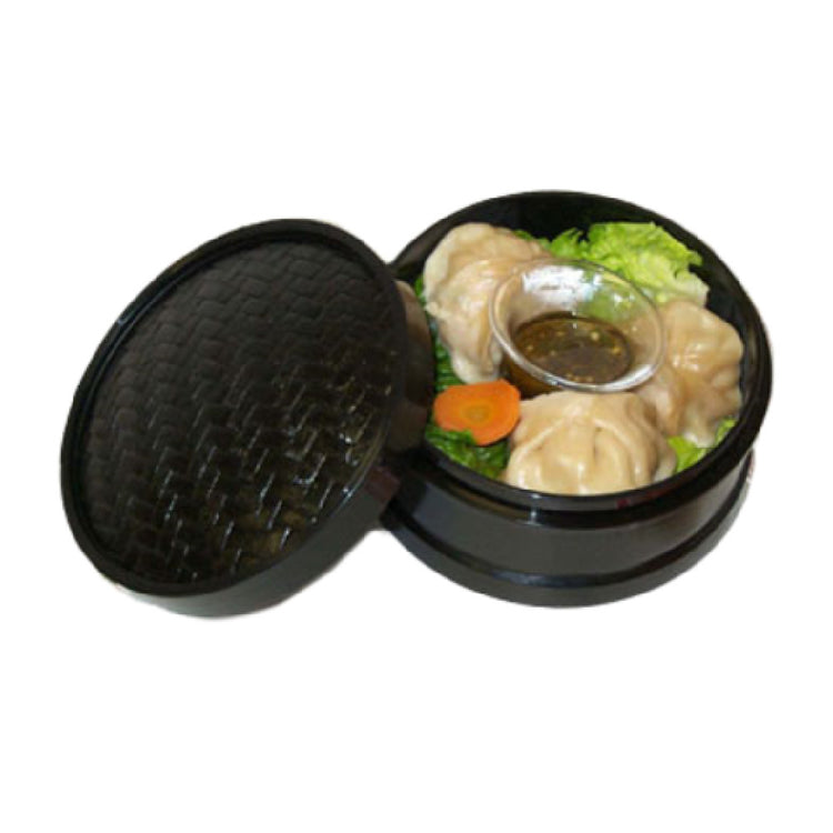 The GET Enterprises STM-85-BK Hidden Treasures™ Steamer Set is an 8-1/2" diameter steamer that stands 3-1/4" high, providing a substantial size for diverse culinary presentations. Constructed from polypropylene, this steamer set is designed to be break-resistant, ensuring durability and longevity in various food service environments. This feature makes it a suitable choice for bustling restaurants and catering services where resilience is paramount. This steamer set is also dishwasher safe, offering convenience for busy kitchen staff with its easy-to-clean attribute. However, it is important to note that this product is intended for presentation purposes only, highlighting its role in enhancing visual appeal rather than functional cooking use. The set is available in a sleek black color, adding a touch of elegance to any food display. Packed by the dozen, it is ideal for establishments that require multiple units. The GET Enterprises STM-85-BK steamer set is engineered to meet the demands of the hospitality industry by combining practicality with aesthetic appeal, making it a valuable asset for those seeking to elevate the presentation of their culinary creations while maintaining durability and ease of maintenance.
