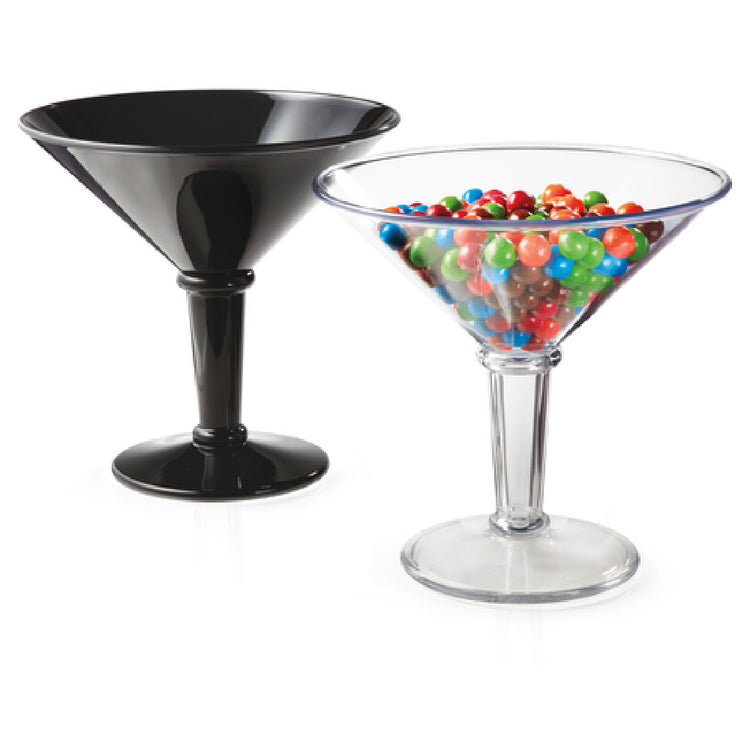 The GET Enterprises SW-1419-BK Super Martini is a distinctive and sizable drinkware piece, tailored for those seeking a unique presentation in their beverage service. With a generous capacity of 48 ounces, rim full, this super martini glass measures 9-1/4 inches in diameter and stands 9 inches tall, making it an eye-catching centerpiece for any event or gathering. Constructed from SAN (styrene acrylonitrile), the glass is designed to combine durability with an elegant aesthetic, ensuring longevity while maintaining a sleek appearance. The black finish adds a touch of sophistication, suitable for upscale events and trendy venues. Packed in cases of three, this product is ideal for restaurants, bars, and hospitality businesses aiming to enhance their drink presentation. The GET Enterprises SW-1419-BK Super Martini's large size and modern design cater to the demands of high-volume settings, providing both style and practicality. Its distinctive characteristics and robust construction make it a versatile choice for any market segment looking to elevate their beverage service with a blend of functionality and flair.