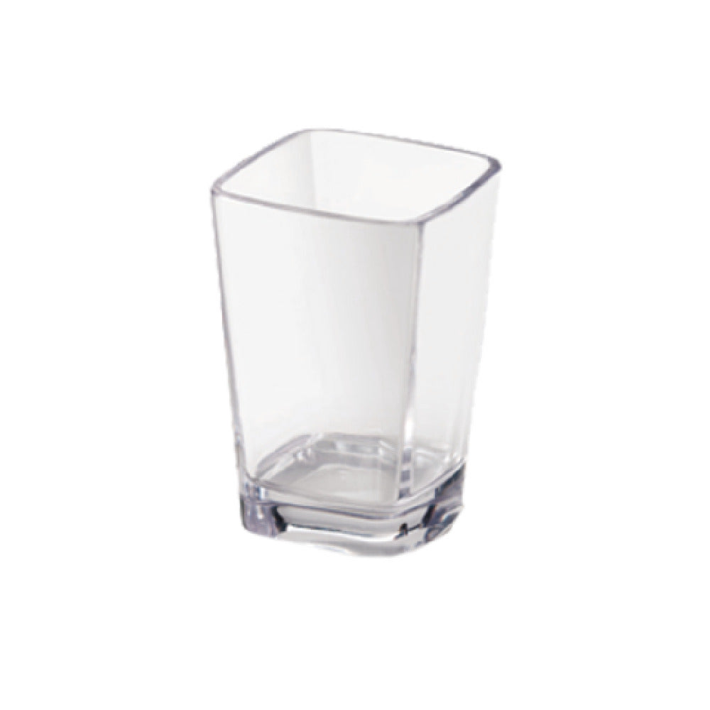 The GET Enterprises SW-1435-CL Petite Dessert/Shot Glass is a compact and versatile glassware option with a capacity of 3 oz., extending to 3.15 oz. when filled to the rim. This square-shaped glass measures 1-9/10 inches in width, 1-9/10 inches in depth, and stands 2-9/10 inches tall, making it a petite yet functional choice for various serving needs. Crafted from SAN (styrene acrylonitrile), this glass is clear, allowing for an elegant presentation of its contents. The material choice ensures durability and resistance to breakage, making it suitable for both commercial and residential settings. Packed by two dozen per case, the GET Enterprises SW-1435-CL is ideal for hospitality businesses such as hotels, restaurants, and catering services that require dependable and stylish glassware for serving desserts, appetizers, or numerous types of shots. Its modest size and clear design offer flexibility in showcasing vibrant culinary creations or cocktail compositions, appealing to culinary professionals and home entertainers alike. The clear SAN construction provides an excellent balance between aesthetic appeal and practicality, making this petite glass a valuable addition to any glassware collection.