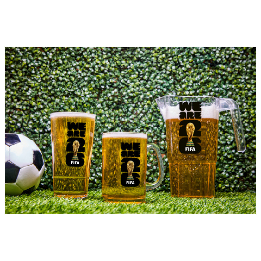 G.E.T., SW-1464-FIFA26-LOGOCOLOR, FIFA Beer Mug, 20 oz (21 oz Rim-Full), 3.4" dia. (4.9" dia. w/Handle) x 5.6" H., World Cup Trophy logo (24 each per case) (Item cannot be co-branded with a logo) (Minimum order quantities (MOQ) may apply) (NET, no additional discounts available) (Packed By: Cs)