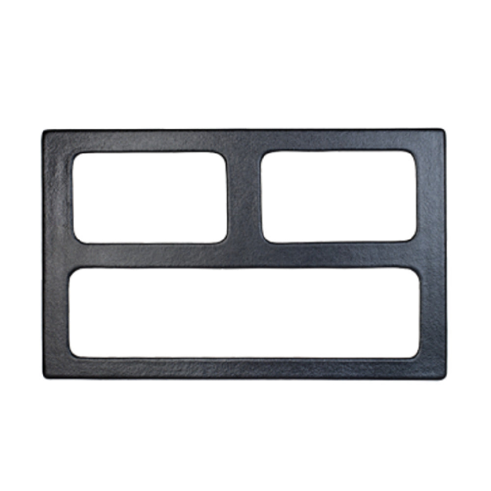 GET Enterprises T0A27CH Bugambilia® Single Tile 20-13/16"L X 12-3/4"W Cast Aluminum With Resin Coating is an innovative solution tailored for those seeking durability and functionality in their display settings. This product is expertly crafted from cast aluminum, ensuring robust durability, and is coated with a specialized resin for enhanced longevity and resistance to wear. The dimensions of this tile, 20-13/16"L x 12-3/4"W, are meticulously designed to fit precise spatial requirements, making it a versatile choice for various setups. A standout feature includes three rectangular openings, specifically engineered to accommodate 1 x BUD25 and 2 x BUD23, offering seamless integration with compatible components. The elegant chocolate finish not only provides a sophisticated aesthetic appeal but also aligns with diverse design palettes, making it suitable for multiple market segments such as restaurants, catering services, and hospitality venues. This product, with a lead time of 3-4 weeks, is packed individually, ensuring careful handling and quality assurance upon delivery. The GET Enterprises T0A27CH is an exemplary addition for industry professionals seeking a reliable and aesthetically pleasing display solution.