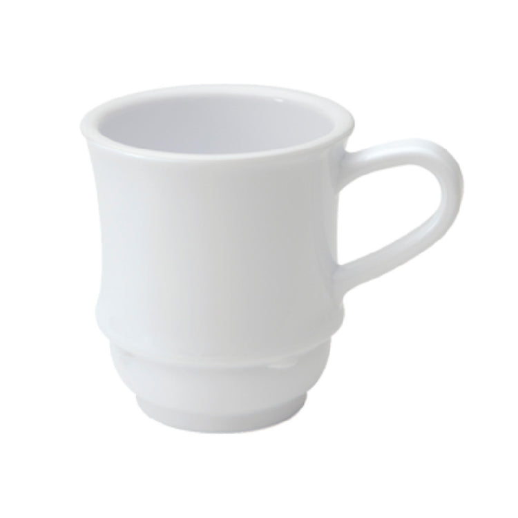 The GET Enterprises TM-1208-W Diamond White™ Mug 8 Oz. (9-1/2 Oz. Rim Full) 3-1/4" Dia. X 3-1/2"H is a versatile and durable choice for various dining environments, including cafes, restaurants, and hospitality settings. This mug is crafted from SAN (Styrene Acrylonitrile) material, ensuring it is break-resistant, making it ideal for high-traffic areas where durability is crucial. With a capacity of 8 ounces and a rim full capacity of 9-1/2 ounces, it is perfect for serving a range of beverages, from coffee to tea. The mug measures 3-1/4 inches in diameter and 3-1/2 inches in height, providing a balanced and comfortable grip for users. Its stacking design allows for efficient storage, optimizing space in busy kitchen environments. The Diamond White™ color adds a touch of elegance and modernity, enhancing any tabletop setting. Dishwasher safe, this mug ensures easy cleaning and maintenance, making it suitable for fast-paced service environments. Packed by 2 dozen per case, the GET Enterprises TM-1208-W is an excellent investment for businesses looking to equip their establishments with reliable and aesthetically pleasing drinkware that can withstand the rigors of daily use.