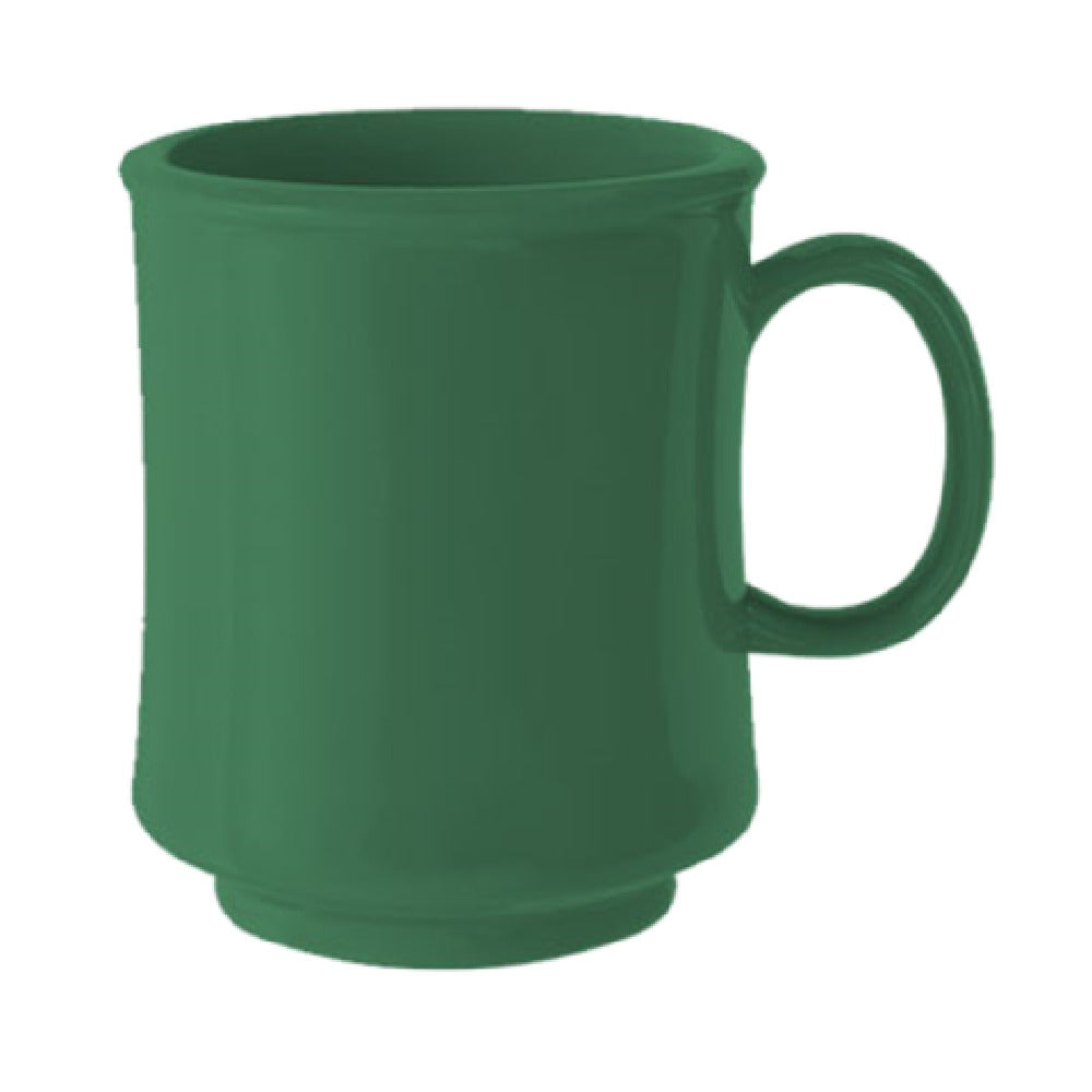 The GET Enterprises TM-1308-FG Mug 8 Oz. (10 Oz. Rim Full) is a meticulously designed beverage container, particularly appealing for institutions requiring durable and practical serving solutions. With dimensions of 3-1/4 inches in diameter and 3-3/4 inches in height, this mug strikes a balance between compact form and functional volume. Engineered with shatter-resistant properties, it is crafted from TRITAN material, which ensures its resilience in high-traffic environments like cafeterias, schools, and hospitals. This mug's vibrant rainforest green color adds an aesthetic appeal while its BPA-free composition aligns with health-conscious standards. The product's NSF certification affirms compliance with rigorous health and safety guidelines, making it a reliable choice for professional settings. Designed for ease of use, the stacking feature optimizes storage space, an essential quality for operations with limited storage capacity. The dishwasher-safe attribute enhances efficiency during cleaning processes, saving time and effort in busy service areas. Packed by 2 dozen per case, it is ideal for bulk purchasing by enterprises seeking a cost-effective, stylish, and robust mug solution for their beverage service needs. This product's thoughtful design and material integrity make it a versatile option for various market segments within the food service industry.