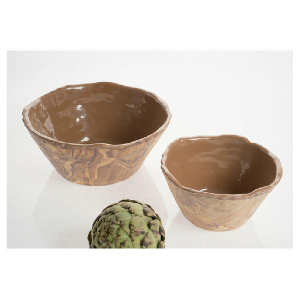 The GET Enterprises TRA203 Cheforward Transform Trunk Bowl is a versatile kitchen essential designed for both professional and home use. With a generous capacity of 96 ounces, it is perfect for serving or preparing large quantities of food. The bowl measures 10 inches in diameter and 4-1/4 inches in height, making it an ideal size for a variety of culinary applications. Constructed from durable melamine, it offers the look of olive wood while being lightweight and shatterproof. This material ensures that the bowl is dishwasher safe, providing ease of cleaning and maintenance. Additionally, the bowl is BPA-free, ensuring safety for food handling and consumption. Each case includes six of these large, round bowls, catering to the needs of restaurants, catering services, and event planners who require reliable and stylish serving ware. The GET Enterprises TRA203 Cheforward Transform Trunk Bowl combines functionality with aesthetic appeal, making it a valuable addition to any food service operation or kitchen setting. Its robust design and practical features make it suitable for a wide range of market segments, including commercial kitchens and home chefs seeking high-quality, safe, and visually appealing serving solutions.