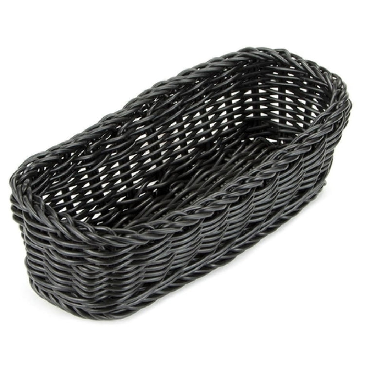 GET Enterprises WB-1507-BK Clipper Mill Designer Polyweave Basket™ 10" X 4-3/4" X 3"H Rectangular is a versatile and durable product ideal for various market segments, such as restaurants, catering services, and hospitality venues. This rectangular basket, measuring 10 inches by 4-3/4 inches by 3 inches in height, is crafted from break-resistant polypropylene, ensuring longevity and resilience even in high-traffic environments. The product's black color adds a sleek and modern aesthetic, making it suitable for both casual and upscale settings. A significant advantage of this basket is its dishwasher-safe feature, simplifying the cleaning process and maintaining hygiene standards efficiently. Furthermore, the basket is BPA-free, aligning with health and safety regulations and providing peace of mind to users concerned about food safety. Sold in cases of 12, this basket is a practical choice for businesses requiring multiple units for their operations. The GET Enterprises WB-1507-BK Polyweave Basket stands out for its combination of durability, safety, and aesthetic appeal, making it an excellent addition to any commercial foodservice environment.