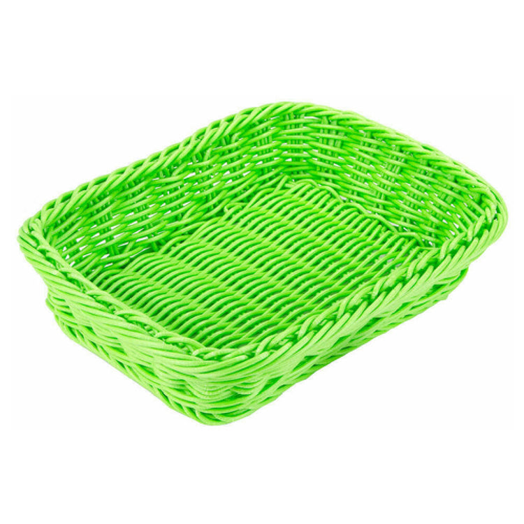 The GET Enterprises WB-1508-G Clipper Mill Designer Polyweave Basket is a rectangular basket measuring 11-1/2" x 8-1/2" x 2-3/4"H, expertly crafted to suit a variety of industry needs. Constructed from durable polypropylene, this basket is break-resistant, ensuring longevity in both high-traffic and busy environments. Its green hue adds a touch of elegance while maintaining a professional aesthetic. This product is BPA free, aligning with health-conscious standards and ensuring safe use in food service settings. The basket's dishwasher-safe feature supports easy and efficient cleaning, making it highly practical for restaurants, catering services, and hospitality venues. Each case contains 12 units, providing ample supply for establishments requiring multiple baskets to accommodate serving or storage needs. The GET Enterprises WB-1508-G is an exceptional choice for those seeking a balance of style, functionality, and durability in their serviceware, particularly in the food service industry where reliability is key.
