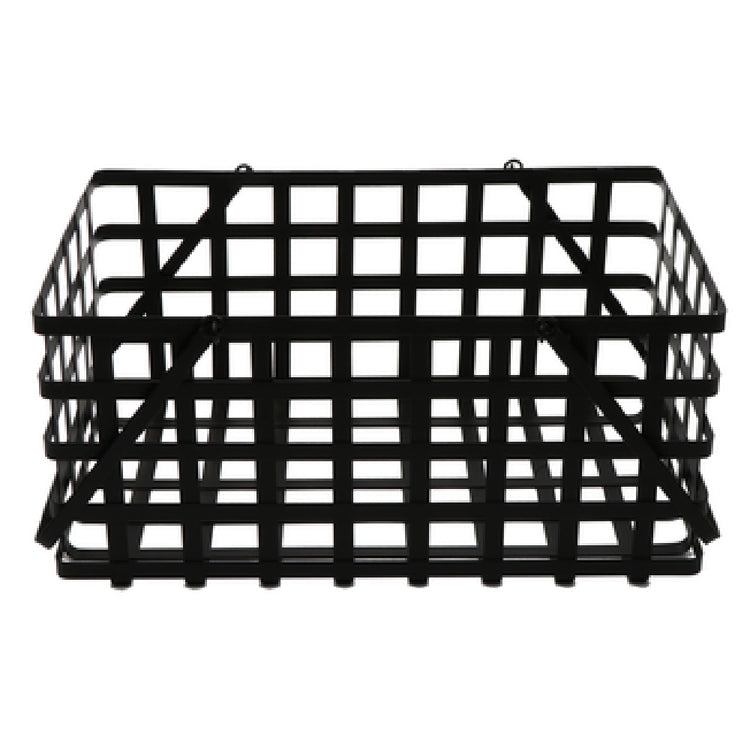 The GET Enterprises WB-566-BK Urban Renewal™ Harvest Basket is a meticulously designed rectangular basket measuring 18 inches in length, 11-1/2 inches in width, and 8-1/2 inches in height. This basket is crafted with a metal strap construction in a sleek black finish, which ensures durability and a modern aesthetic suitable for various professional settings. Equipped with sturdy handles, this basket provides convenient handling and portability, making it an ideal choice for transporting goods. The basket's durable metal construction is particularly beneficial for industries requiring reliable and robust storage solutions. This product is packaged with 8 units per case, catering to bulk purchasers and businesses looking for efficient inventory options. Its versatile design and sturdy build make it a valuable asset for sectors such as hospitality, retail, and agriculture, where the organization and stylish presentation of goods is paramount. The GET Enterprises WB-566-BK Urban Renewal™ Harvest Basket seamlessly combines functionality with a contemporary design, offering a practical and visually appealing solution for your storage and display needs.