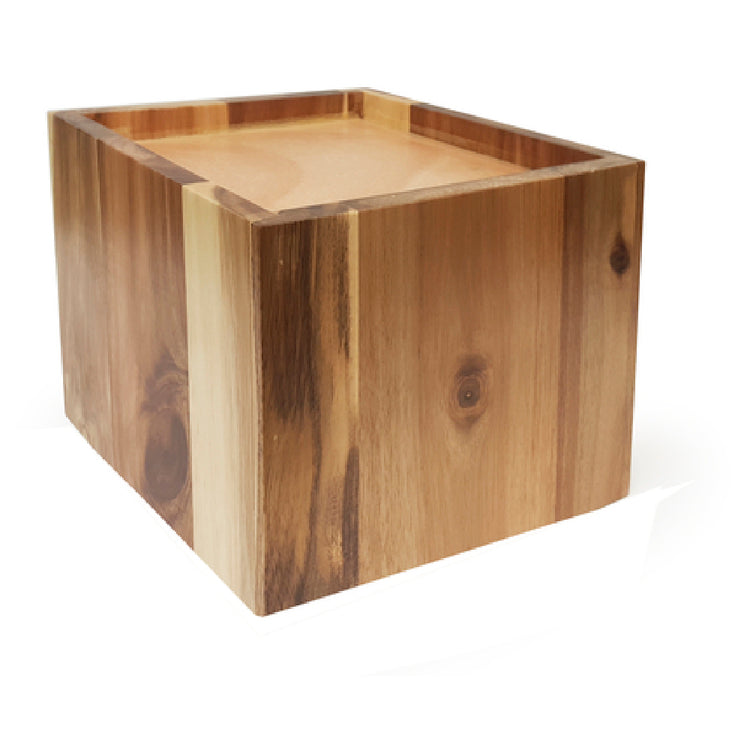 The GET Enterprises WB-959-UR Urban Renewal™ Dispenser Riser 9-1/2" X 9-1/2" X 8"H Square is a unique and efficient accessory designed for the modern beverage service industry. This square dispenser riser is specifically crafted for use with the acrylic juice beverage dispenser (DISP-3), providing an elevated platform to enhance visibility and accessibility. The riser measures 9-1/2 inches by 9-1/2 inches with a height of 8 inches, making it a compact yet impactful addition to any service setting. Constructed from durable wood, it embodies an urban rustic aesthetic, blending seamlessly into contemporary or traditional environments. This product is packed individually, ensuring quality and attention to detail in each unit. Ideal for catering events, hotel buffets, or any food service operation, the Urban Renewal™ Dispenser Riser not only elevates your beverage presentation but also serves as a testament to sturdy construction and design versatility. Its ability to adapt to various settings while maintaining a consistent look marks its unique value proposition, making it a favored choice among professionals seeking both form and function in their service equipment.
