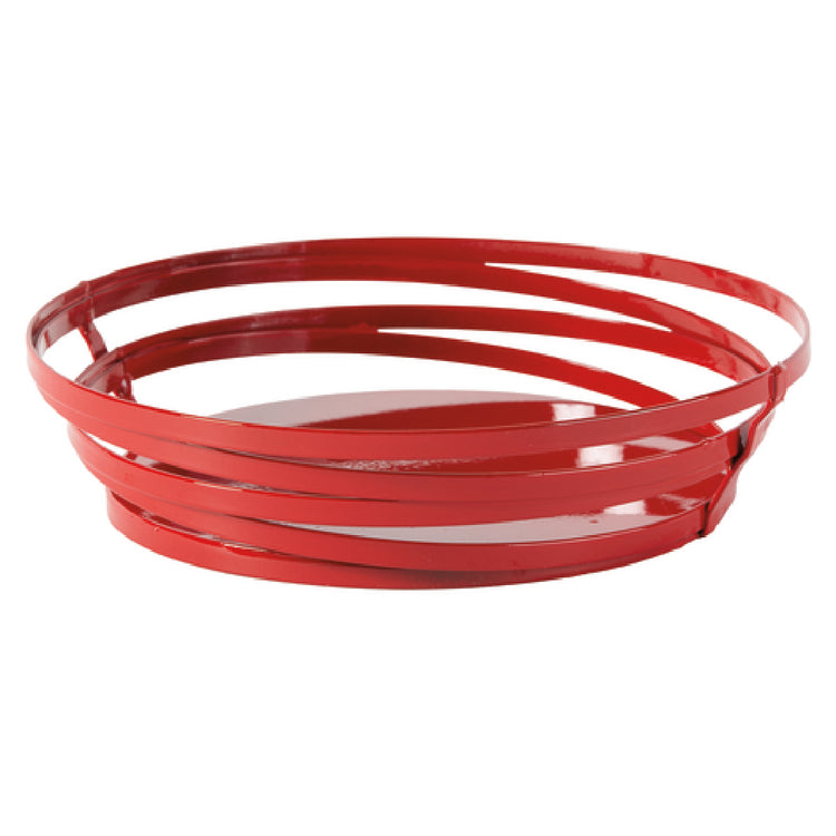 The GET Enterprises WB-992-R Cyclone™ Serving Basket is an expertly crafted product that combines function and design for versatile use in food service establishments. Measuring 9 inches in diameter and 2-1/4 inches in height, this round serving basket stands out due to its sturdy construction and aesthetic appeal. Made from powder-coated metal wire, it offers durability and a distinctive style that elevates presentation. The solid bottom ensures stability and practical use, accommodating a variety of serving needs. Its vibrant red color adds a splash of color to any table setting, making it an excellent choice for both casual and upscale environments. This product is packed by 12 each per case, catering to the demands of busy restaurants, cafes, and catering services that require reliable, high-quality serving solutions. This serving basket is a perfect fit for establishments looking to enhance their tableware collection with a touch of modern elegance, while maintaining a practical and functional edge. Its thoughtful design and robust build make it an ideal choice across different market segments, offering a unique blend of style and utility that accommodates various culinary presentations.
