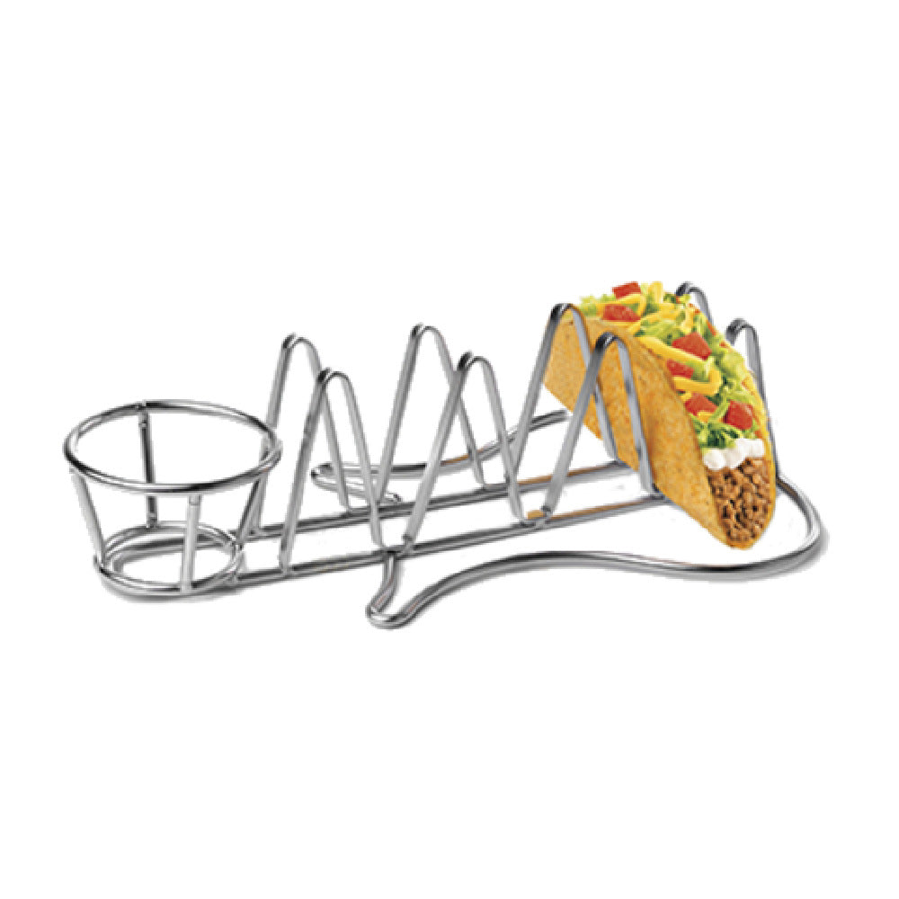 The GET Enterprises WGUITAR-01 Clipper Mill Ramekin/Taco Holder is a distinctive piece designed with both style and functionality, making it an exceptional addition to any food presentation setup. This holder stands out with its unique guitar-shaped design, bringing a creative flair to tabletop service, perfect for adding a thematic touch to restaurants, catering events, or music-themed venues. Constructed from high-quality stainless steel, it ensures durability and resistance to corrosion, making it suitable for frequent use in busy kitchen environments. Measuring at 10-1/2", it offers a reliable structure to securely hold a variety of ramekins or tacos. With a capacity of 2-1/2 oz., the holder is ideal for serving dips, sauces, or small side dishes, enhancing portion control and presentation elegance. The GET Enterprises WGUITAR-01 is conveniently packed with six units per case, making it a practical choice for establishments requiring consistency in service ware. Its innovative design not only serves a functional purpose but also elevates the dining experience, catering to diverse market segments such as casual dining restaurants, upscale eateries, and event catering services. This product combines aesthetic appeal with practical utility, making it a valuable asset for enhancing culinary presentations.