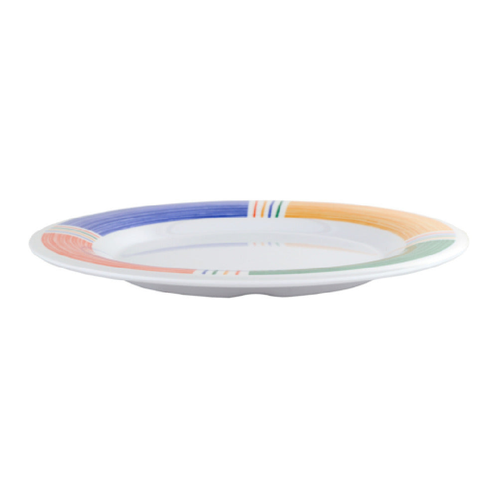The GET Enterprises WP-12-BA Diamond Barcelona™ Plate 12" Dia. Round is a meticulously crafted dining solution designed to meet the rigorous demands of the food service industry. This plate features a 12-inch diameter with a round shape and wide rim, providing ample space for showcasing culinary creations. Constructed from high-quality melamine, it is break-resistant, offering durability and longevity in busy environments. A key benefit is its dishwasher-safe nature, ensuring ease of cleaning and maintenance for high-volume operations. The plate is BPA-free, aligning with safety standards for food contact materials. Additionally, it carries the NSF certification, which highlights its compliance with strict public health and safety regulations. This plate's unique value proposition lies in its blend of durability and safety, making it an ideal choice for restaurants, hotels, and catering services looking to maintain high standards of presentation and operational efficiency. It is sold in packs of one dozen, allowing establishments to easily integrate it into their existing dinnerware collections or use it for special events. The GET Enterprises WP-12-BA Diamond Barcelona™ Plate stands out as a reliable and stylish option for various market segments within the hospitality industry, combining practicality with elegance.