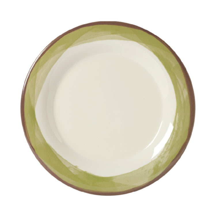 The GET Enterprises WP-9-DI-KNG Diamond Ivory™ Plate 9" Dia. Round is a meticulously crafted dining essential designed to meet the rigorous demands of the hospitality and food service industry. With a diameter of 9 inches, this elegantly round plate features a wide rim that adds a touch of sophistication to any table setting. Its construction from high-quality melamine material ensures break-resistance, making it a durable choice for high-traffic environments. The plate's Kanello™ green hue accentuates its Diamond Ivory™ finish, providing a visually appealing contrast that enhances food presentation. Certified by NSF, this plate meets strict public health protection standards, ensuring safety and quality in every use. Its BPA-free composition assures users of its non-toxicity, catering to health-conscious diners. Dishwasher safe, the GET Enterprises WP-9-DI-KNG plate offers convenience in maintenance, reducing labor costs and increasing efficiency in busy kitchens. Each case contains two dozen plates, allowing for ample service capacity in banquet settings, restaurants, or catering services. This plate's blend of aesthetic appeal and practical functionality makes it an ideal choice for diverse market segments, including upscale dining establishments, casual eateries, and institutional dining facilities, where durability and style are paramount.