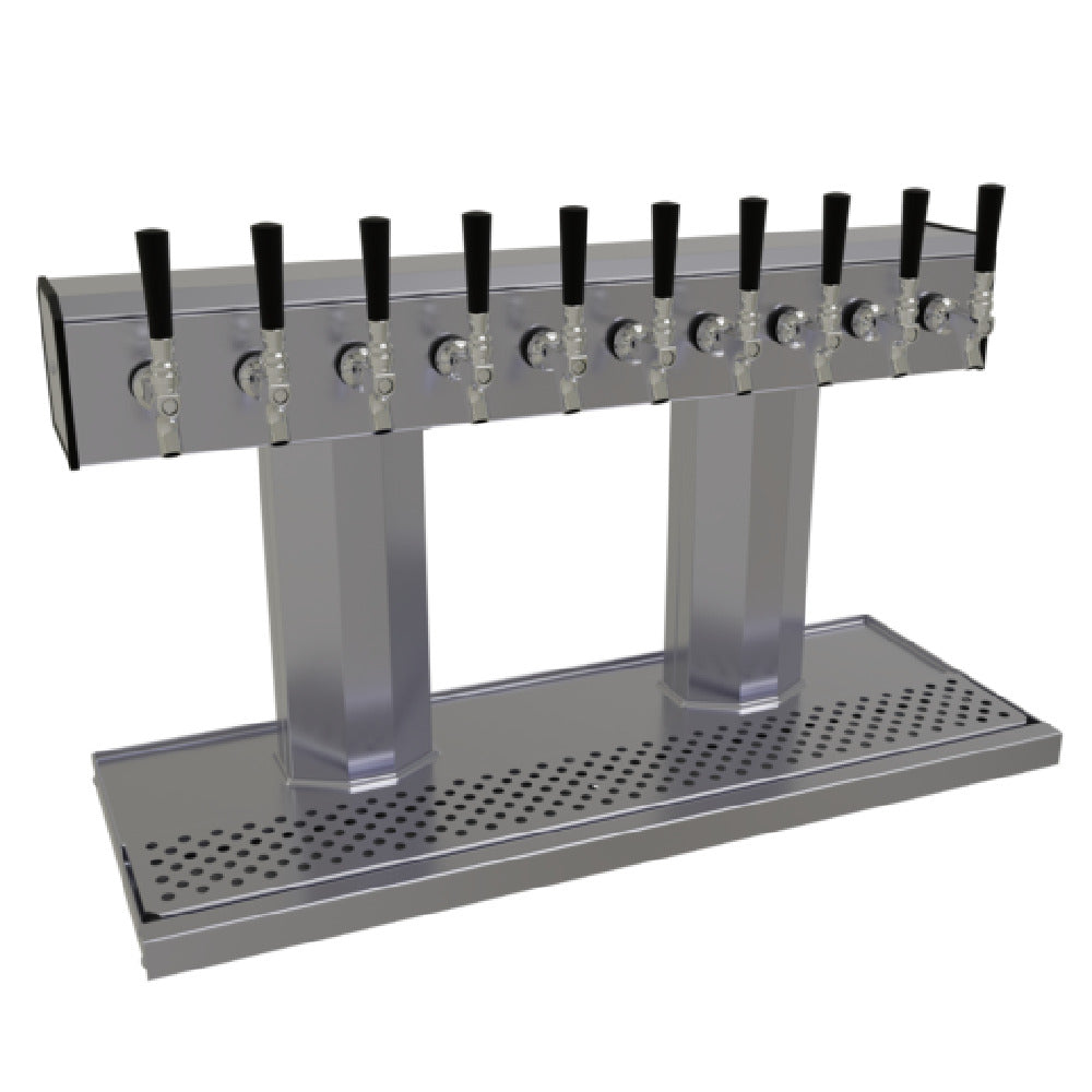Glastender BT-10-SSR Tee Draft Dispensing Tower Countertop (10) Stainless Steel Faucets (handles Not Included)