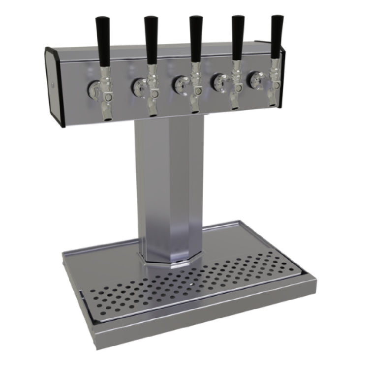 Glastender BT-5-SSR Tee Draft Dispensing Tower Countertop (5) Stainless Steel Faucets (handles Not Included)