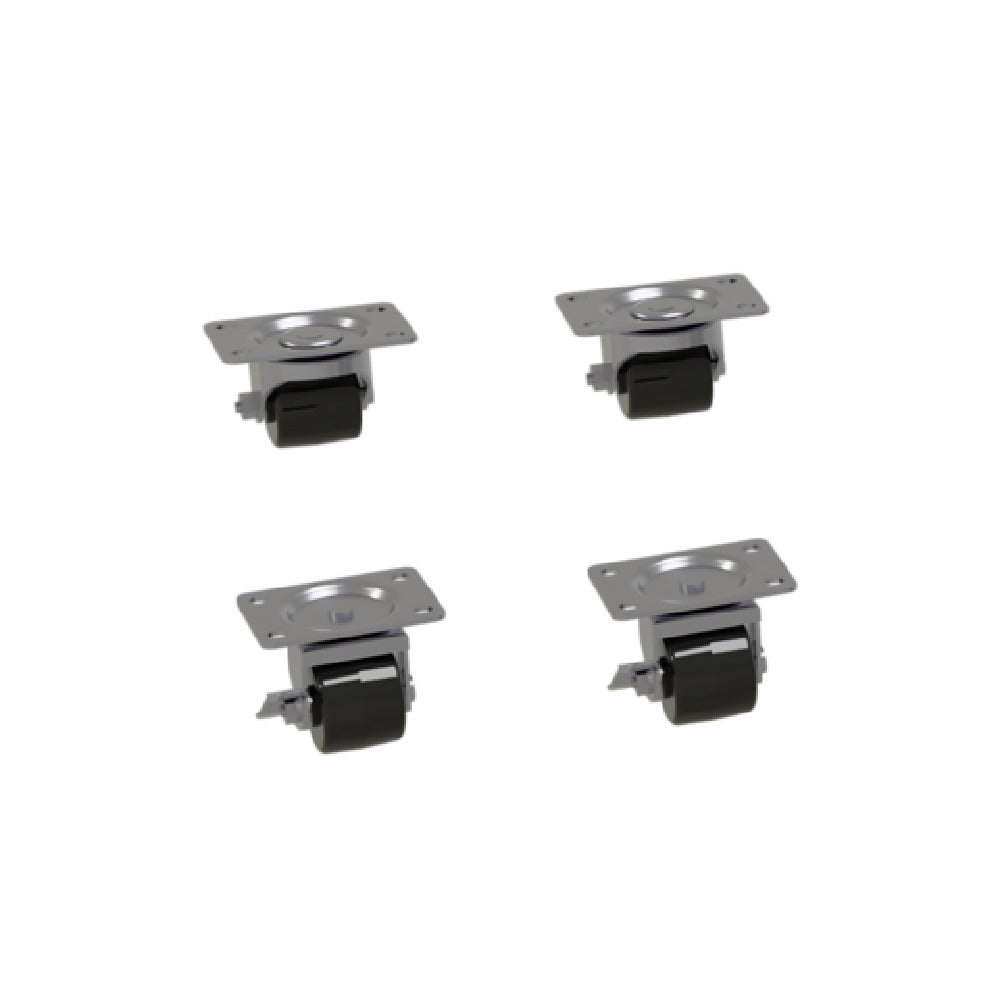 The Glastender C-4X2-7/8 Casters 2-7/8" For Front-serviced Coolers (set Of Four) is a specialized component designed to enhance the mobility and functionality of front-serviced coolers. Featuring a precise measurement of 2-7/8 inches, these casters are meticulously crafted to ensure seamless integration with your coolers, offering the versatility needed in dynamic commercial environments. This set of four durable casters contributes to easy maneuverability and relocation of cooling units, a crucial factor for maintaining efficient workflows in busy kitchen spaces. Engineered by Glastender, Inc., a trusted name in the industry, these casters represent a blend of reliability and efficiency, meeting the demands of different market segments, from bustling restaurants to compact cafes. Their robust construction supports the rigorous demands of food service operations, ensuring stability and longevity. The thoughtful design of the Glastender C-4X2-7/8 Casters underscores its role as a vital accessory, enhancing the operational capabilities of any front-serviced cooler setup. This product is a testament to Glastender's commitment to quality and innovation, providing an essential solution for businesses aiming to optimize their cooling equipment's performance and adaptability.