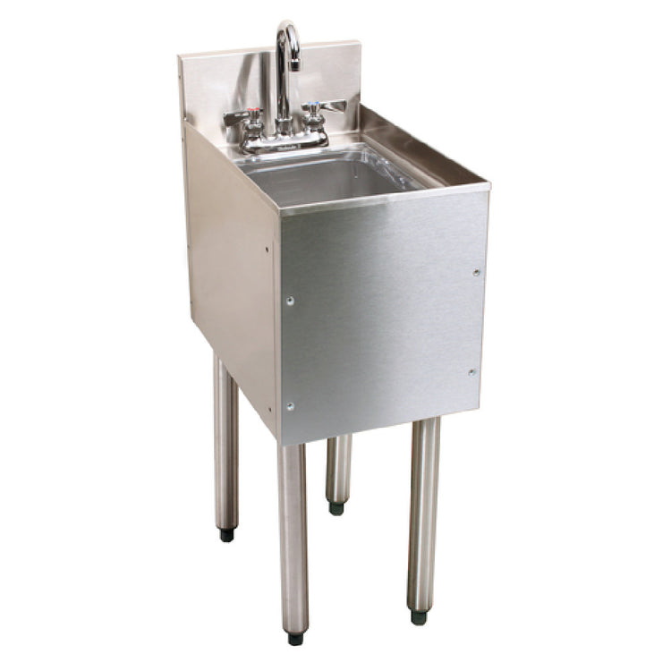The Glastender C-SWB-12 CHOICE Underbar Wet Waste Sink Unit is a meticulously engineered solution designed for efficient waste management in commercial settings. With dimensions of 12"W overall and featuring a bowl measuring 9-1/4" x 11-1/2" x 6" deep, it provides ample capacity for handling wet waste under the bar. The unit is equipped with a deck mount gooseneck faucet that is low lead compliant, ensuring safety and environmental responsibility. Adding to its utility is the lift-out plastic perforated sink strainer, which simplifies the cleansing process by trapping debris. The one-piece seamless top and backsplash with radius corners not only enhance the unit's aesthetic appeal but also facilitate easy cleaning, reducing maintenance time. Constructed entirely from welded stainless steel, this unit ensures durability and resistance against corrosion, while the adjustable thermoplastic bullet feet provide stability on uneven surfaces. Certified by ETL-Sanitation and complying with NSF/ANSI 61, Annex G standards, this sink unit is a reliable choice for businesses prioritizing hygiene and health compliance. The Glastender C-SWB-12 is ideal for use in bars, restaurants, and other food service environments, offering a perfect blend of functionality, durability, and regulatory compliance.