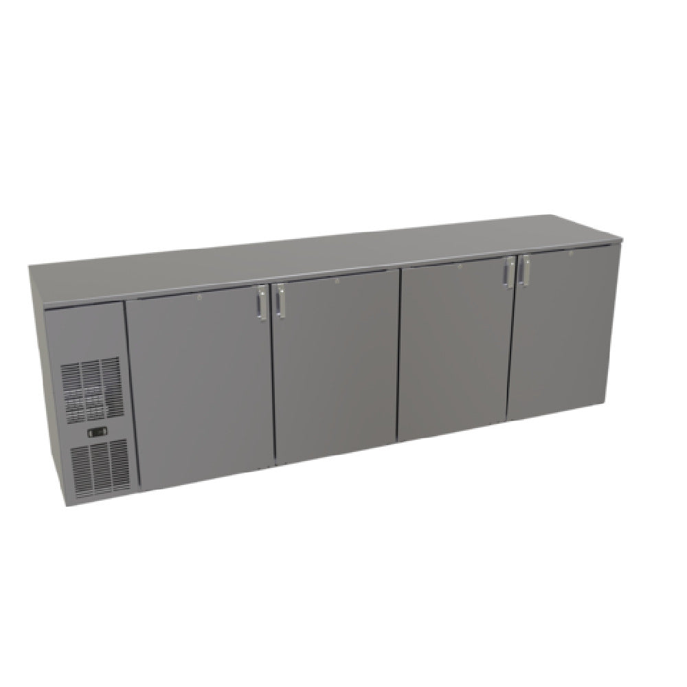 The Glastender C1FB108 Cooler stands out with its one-zone, front-serviced design, tailored for optimal efficiency in bar settings. With a substantial width of 108 inches and a four-section layout, this cooler accommodates a 20-inch door opening, facilitating seamless access. Its self-contained refrigeration system is enhanced by LED interior lighting, ensuring visibility and efficiency in low-light environments. The front venting feature optimizes air circulation, crucial for maintaining consistent temperatures. Constructed with a stainless steel interior, it promises durability and ease of cleaning, adhering to high hygiene standards. This model employs R290 Hydrocarbon refrigerant, a sustainable choice aligning with modern eco-friendly practices. Powered by a 1/4 HP motor, it is engineered to meet NSF Standard 7 for open food storage, affirming its suitability for commercial food applications. Certified by cETLus, ETL-Sanitation, and ETL Verified, the Glastender C1FB108 Cooler is a reliable and compliant option for industry professionals seeking efficient, sustainable, and durable refrigeration solutions. Its design and specifications cater to diverse market segments, including bars and restaurants, where reliable cooling and ease of service access are paramount.