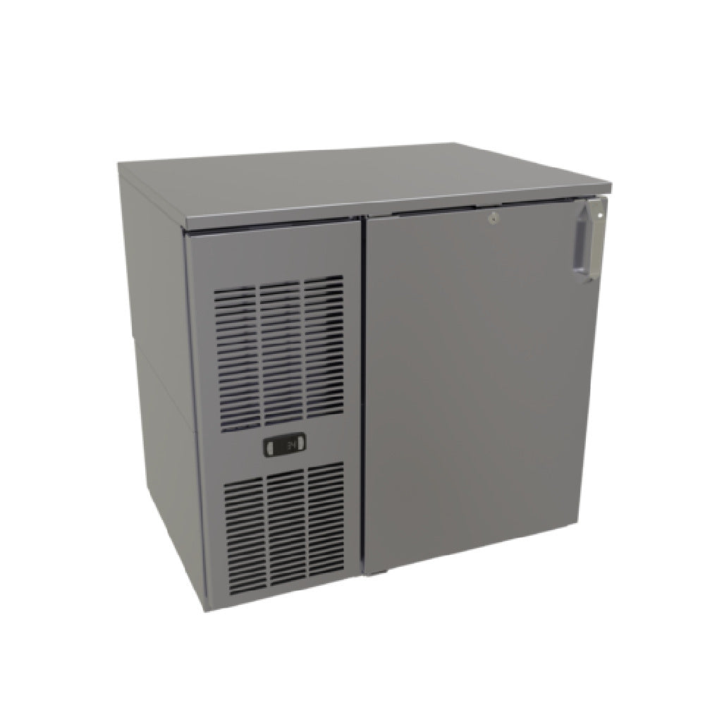 The Glastender C1FL32 Cooler - one zone front serviced unit - is a versatile refrigeration solution designed for optimal efficiency in commercial settings. This low-profile cooler features a compact 32-inch width, accommodating a one-section layout with a 16-inch door opening, ideal for space-conscious environments. The self-contained refrigeration system ensures ease of operation and maintenance, supported by LED interior lighting for enhanced visibility. Engineered with front venting, it facilitates efficient airflow, crucial for maintaining consistent internal temperatures. Both the interior and the exterior sub-top are crafted from durable stainless steel, promising longevity and resistance to wear. Equipped with two adjustable shelves per door, it offers flexible storage options. The cooler utilizes R290 Hydrocarbon refrigerant, which is environmentally friendly and energy-efficient, powered by a 1/6 HP compressor. Complying with NSF Standard 7, it is suitable for open food storage, ensuring safety and sanitation. Certified by cETLus, ETL-Sanitation, and ETL Verified, the Glastender C1FL32 Cooler meets rigorous industry standards, making it a reliable choice for food service operations. Please note that this unit is made to order and is non-returnable, emphasizing the customization and specific production process involved.