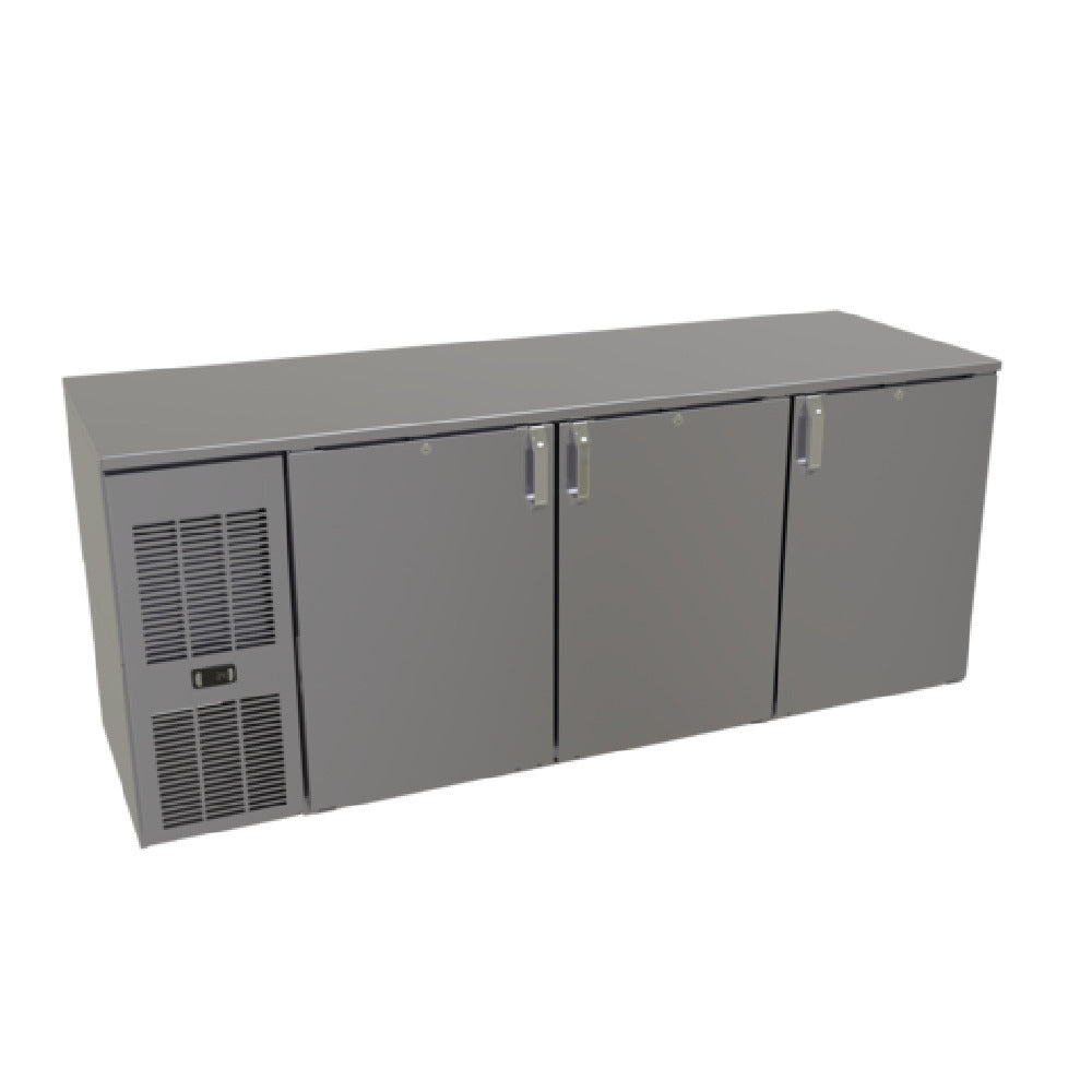 The Glastender C1FL72 Cooler is a versatile refrigeration solution designed for various commercial settings with demanding cold storage needs. This one-zone, front-serviced cooler boasts a low-profile design and measures 72 inches in width, making it suitable for spaces where height might be restricted. It features a three-section layout with a door opening width of 16 inches, ensuring easy access to the stored contents. The cooler is equipped with self-contained refrigeration, utilizing the eco-friendly R290 Hydrocarbon refrigerant, coupled with a 1/4 HP compressor, providing efficient cooling while minimizing environmental impact. Its LED interior lighting enhances visibility, ensuring contents are easily visible, which is crucial in fast-paced environments. The front venting design allows for flexible installation without compromising on space efficiency. The cooler is constructed with a durable stainless steel interior and exterior sub-top, making it resilient and easy to clean. Each door section comes with two adjustable shelves, allowing for customizable storage options. It meets the NSF Standard 7 requirements for open food storage, and is cETLus, ETL-Sanitation, and ETL Verified, ensuring it meets stringent safety and sanitation standards. Notably, the Glastender C1FL72 Cooler is made to order and cannot be returned, emphasizing its tailored manufacturing approach.