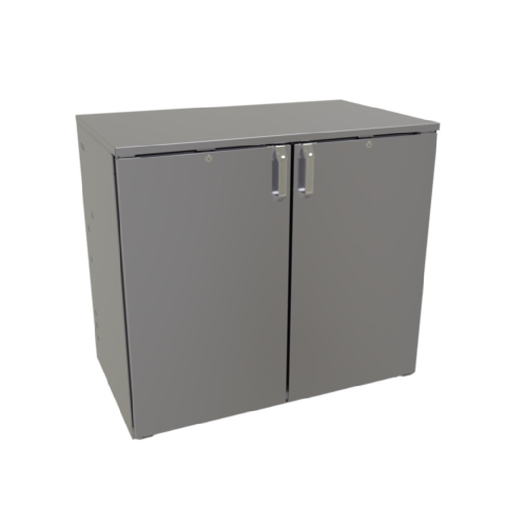 The Glastender C1RB40 Cooler is a one-zone cooler specifically designed for remote refrigeration applications, catering to the unique demands of the bar and beverage service industry. With a width of 40 inches, this two-section cooler features a 16-inch wide door opening, providing ample access to its contents. The cooler is equipped with LED interior lighting, highlighting its contents for easy identification and retrieval, while also contributing to energy efficiency. Both the interior and the sub top exterior are crafted from stainless steel, ensuring durability and ease of maintenance, which are critical factors in high-traffic environments. The Glastender C1RB40 is compliant with NSF Standard 7 for open food storage, affirming its suitability for the safe storage of perishable items. Additionally, the unit is certified by cETLus and ETL-Sanitation, confirming its adherence to stringent safety and sanitation standards. It is important to note that this cooler is made to order and is non-returnable, underscoring the precision and customization involved in its production. This product is an excellent fit for businesses looking for reliable and efficient refrigeration solutions that meet rigorous industry standards.