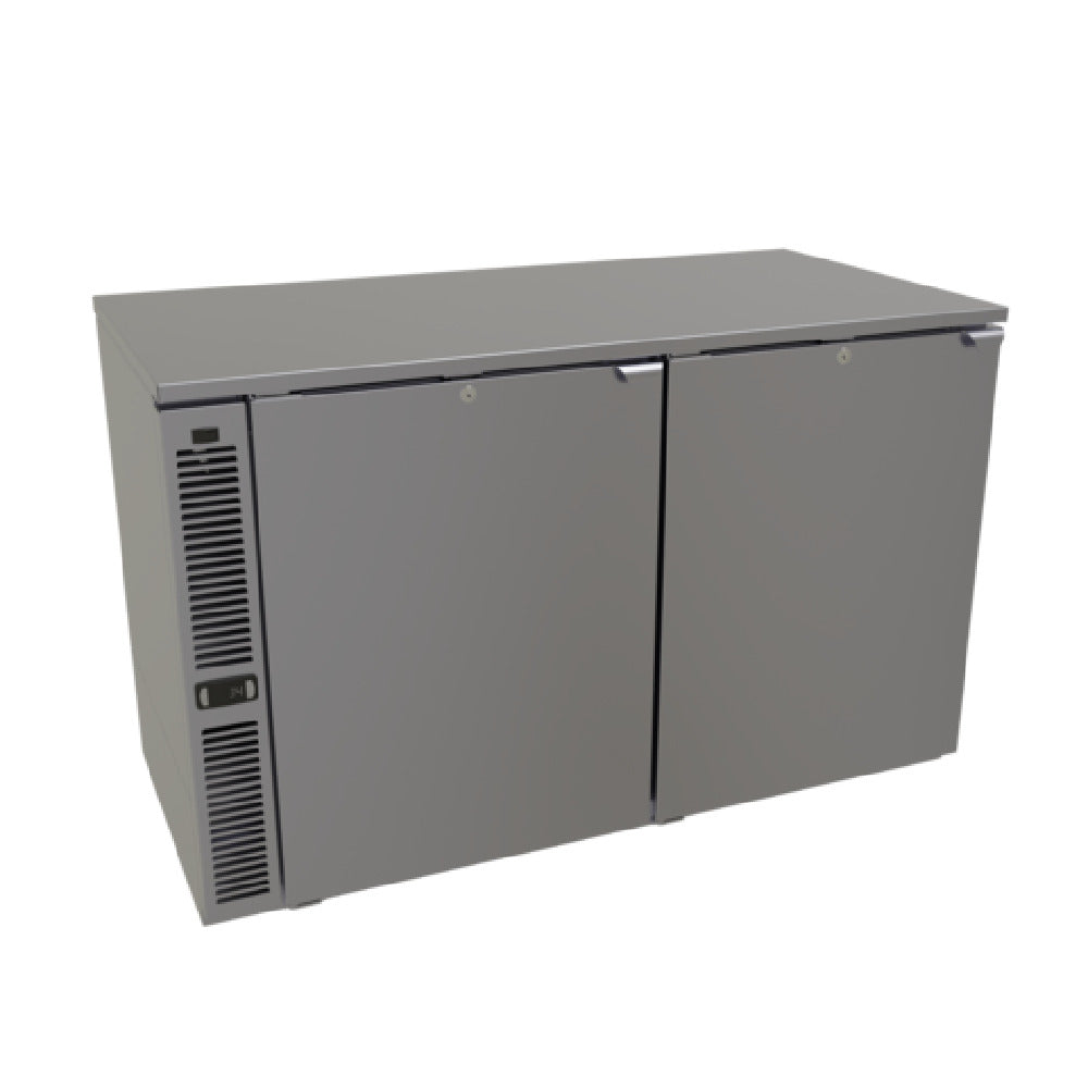 The Glastender C1SL48-UC Cooler is a precision-engineered, one-zone, side-serviced refrigeration unit designed specifically for undercounter installation. With a width of 48 inches, this cooler offers a substantial 11.09 cubic feet of interior capacity, making it an ideal solution for a variety of commercial settings requiring efficient cold storage. It features two sections with an 18-inch wide door opening and includes two adjustable shelves per door, providing versatile storage options. Notably, the cooler is equipped with self-contained refrigeration using R290 Hydrocarbon refrigerant, exemplifying its commitment to eco-friendly practices. The stainless steel interior and stainless steel finished top ensure durability and ease of cleaning, while the LED interior lighting enhances visibility. For enhanced security, it comes with stainless pull tab handles complete with locks. The front venting design allows for optimal airflow, ensuring consistent cooling performance. Operating with a 1/8 HP motor, the cooler is NSF Standard 7 approved, making it suitable for open food storage, and holds cETLus, ETL-Sanitation, and ETL Verified certifications. Please note, this product is made to order and is non-returnable, catering to bespoke commercial refrigeration needs within the food and beverage industry.