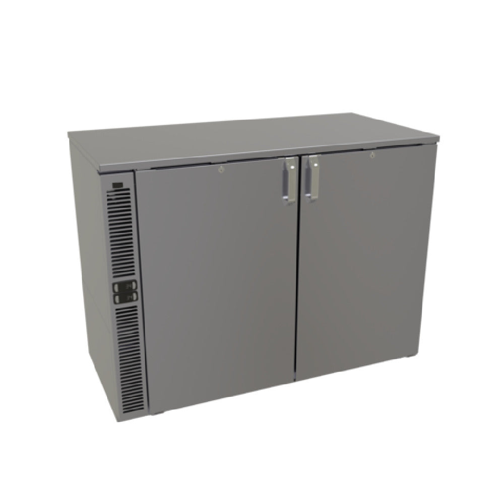 The Glastender C2SB48 Cooler Two Zone Side Serviced is a meticulously engineered refrigeration solution designed for diverse commercial environments requiring high-efficiency cooling. This bar-profile cooler, with its 48-inch width, is divided into two sections, each featuring an 18-inch wide door opening, facilitating easy access and organization of stored products. The cooler is self-contained, incorporating front venting to optimize space utilization in crowded bar settings. It is equipped with energy-efficient LED interior lighting that enhances visibility while maintaining low energy consumption. The interior is constructed of durable stainless steel, ensuring longevity and ease of cleaning, which is crucial in maintaining hygiene standards in food service operations. Utilizing R290 Hydrocarbon refrigerant and powered by a 1/8 HP motor, the cooler is environmentally friendly while delivering robust performance. Certified under NSF Standard 7 for closed container products, this cooler adheres to rigorous safety and sanitation standards, further emphasized by its cETLus, ETL-Sanitation, and ETL Verification. This Glastender model is tailor-made to order, enhancing its appeal for establishments seeking bespoke refrigeration solutions. Please note that due to its custom nature, the product is non-returnable, ensuring that each unit is crafted to meet specific operational needs.