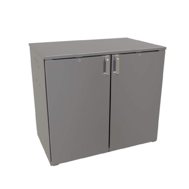 The Glastender CP1RB40 Cooler Pass-thru One Zone is a high-performance refrigeration solution designed for versatility in diverse bar environments. This cooler is tailored for remote refrigeration needs, making it an efficient choice for space-constrained venues requiring streamlined beverage storage. Measuring 40 inches in width with a two-section design, it features a 16-inch door opening that facilitates easy access. Enhanced with LED interior lighting, it ensures clear visibility, minimizing the time needed to retrieve items. The unit's stainless steel interior and exterior sub-top not only provide durability but also contribute to a sleek, professional appearance. Each section is equipped with three adjustable shelves, allowing for customizable storage options to accommodate various product sizes. Certified under NSF Standard 7, this cooler is approved for open food storage, ensuring compliance with stringent health and safety standards. It also holds cETLus and ETL-Sanitation certifications, further validating its reliability and quality. Please note that this product is made to order and is non-returnable, emphasizing the importance of ensuring it meets specific operational requirements before purchase. The Glastender CP1RB40 embodies a harmonious blend of functionality and style, making it an invaluable asset to modern bar operations seeking efficient refrigeration solutions.