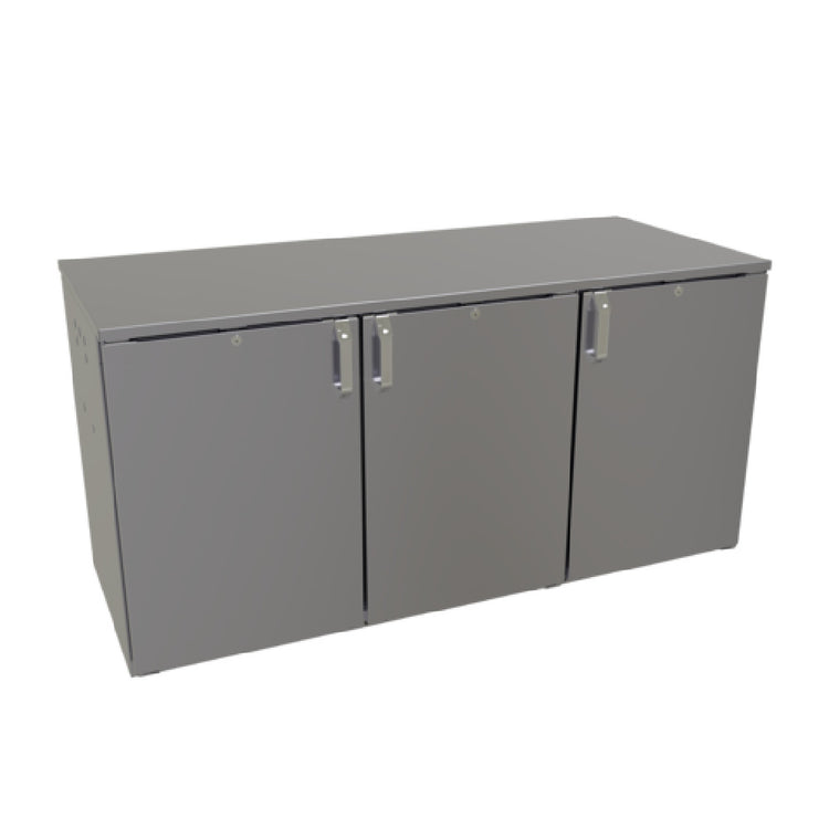 The Glastender CP1RL60 Cooler Pass-thru One Zone is a meticulously designed three-section cooler, offering significant utility for various industry segments requiring precise refrigeration solutions. With its low-profile design, this cooler measures 60 inches in width, making it suitable for spaces where height might be a constraint. Each section features a 16-inch wide door opening, facilitating easy access to stored items. The cooler is engineered for remote refrigeration, ensuring that the cooling unit can be installed separately from the storage area, which can be advantageous in optimizing space and maintenance. The interior of the cooler is illuminated with LED lighting, which not only enhances visibility but also consumes less energy compared to traditional lighting. Featuring a stainless steel interior and exterior sub-top, the CP1RL60 is built to withstand rigorous use while maintaining a sleek appearance. Each section is equipped with three adjustable shelves, allowing for flexible storage configurations. It is designed to meet NSF Standard 7 for open food storage, ensuring compliance with health and safety regulations. Certified by cETLus and ETL-Sanitation, this cooler underscores its commitment to quality and sanitation standards. Note that this product is made to order and is non-returnable, emphasizing its bespoke nature tailored to specific customer requirements.