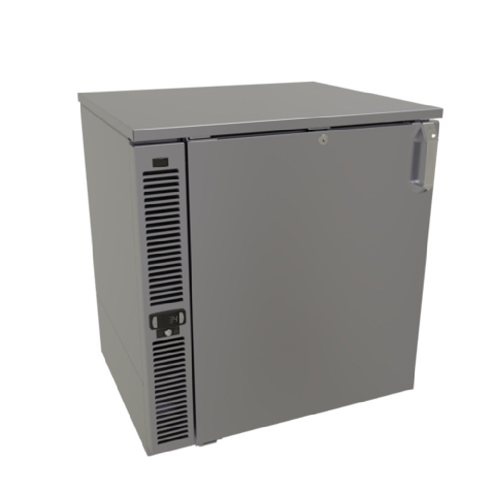 The Glastender F1SL28 Froster One Zone Side Serviced is a cutting-edge refrigeration solution tailored for specialized industry needs. With a compact 28-inch width and a low-profile design, this froster is perfect for space-conscious environments. The unit boasts a side-serviced, one-section configuration, providing an efficient 20-inch door opening for easy access. Equipped with self-contained refrigeration, the Glastender F1SL28 ensures seamless operation with minimal external assistance. It features advanced LED interior lighting, enhancing visibility and accessibility within the unit. The froster's front venting design allows for versatile placement without compromising performance. Constructed with a robust stainless steel interior and exterior sub-top, it promises durability and longevity. The model includes three adjustable shelves per door, offering flexible storage options. Utilizing R290 Hydrocarbon refrigerant and powered by a 1/3 HP compressor, this froster is designed for energy efficiency and environmental friendliness. Certified under NSF Standard 7, cETLus, ETL-Sanitation, and ETL Verified, the Glastender F1SL28 upholds rigorous standards for safety and sanitation. Please note, this product is made to order and is non-returnable, ensuring a tailored fit for your refrigeration needs.