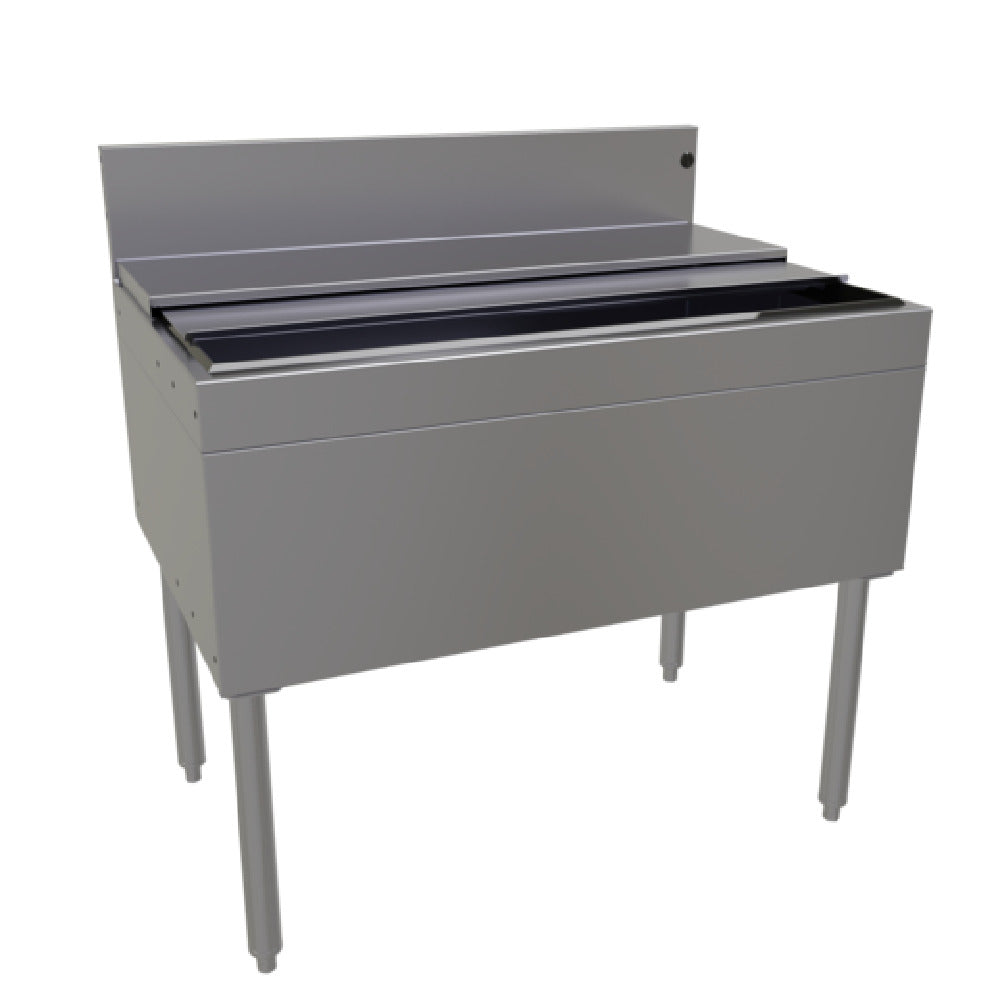 - 36"W x 24"D, underbar ice bin for efficient space use